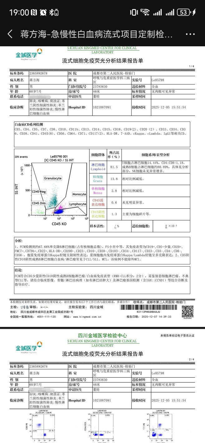 ps :骨髓穿刺的流式,和淋巴结活检的报告好在等,好慢啊
