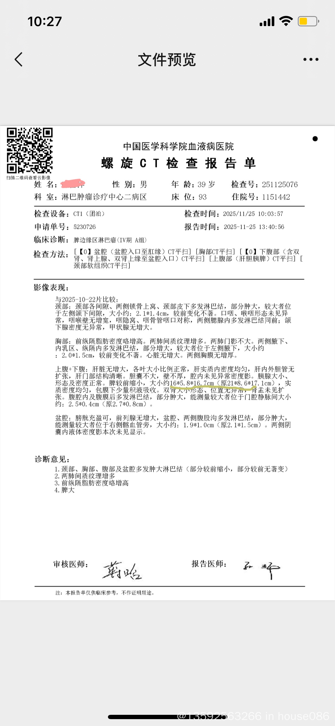 求战友看脾边缘区治疗结果