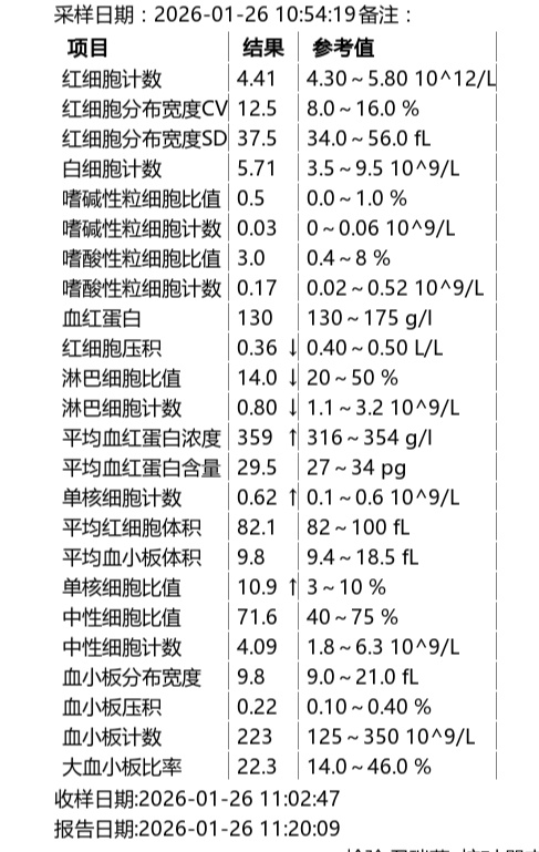 白衣天使7103 发表于 2026-01-26 16:08 查一下,看白细胞低不低。