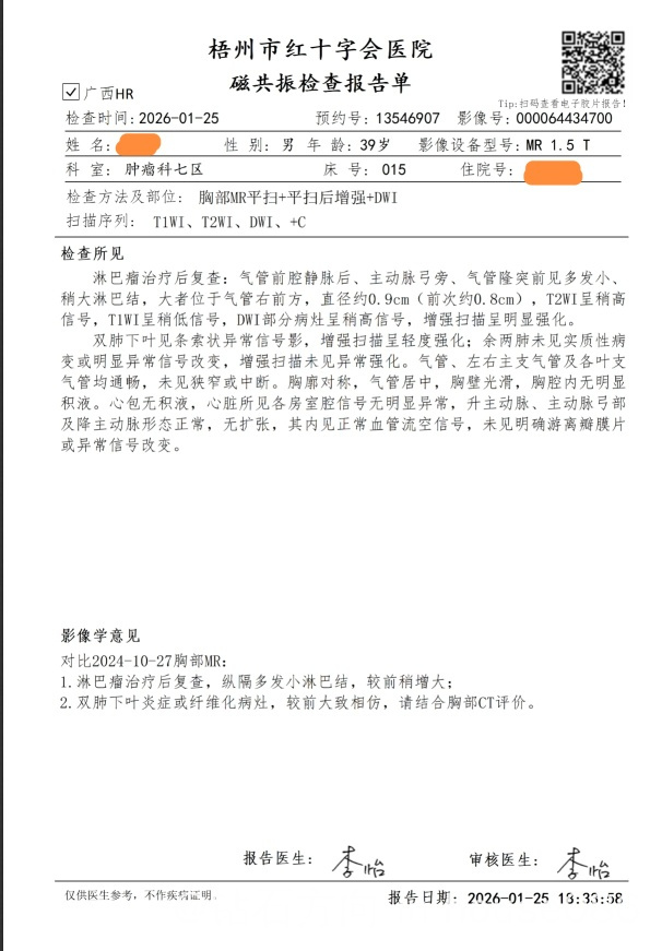 熱心市民 发表于 2026-01-27 16:01 上一篇帖子还是22年发的,现在又不得不来发帖子了,淋巴瘤太难了帖主经济允许的情况下,还是去更加权威点的医院重新评估一下吧
