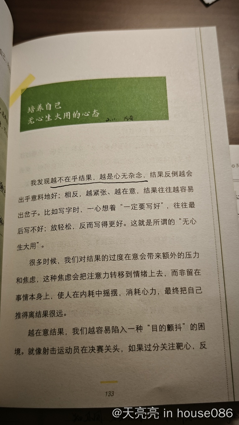 “当你对一件事情越没有执念的时候,反而越接近事情本真。越在意什么,越要抽离什么。做事别祈求结果,清空大脑中与之相关的想法,只是认真去做就好。”