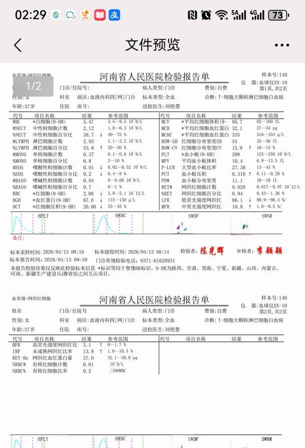 仅凭上面的报告得不出T-LGLL的结论。