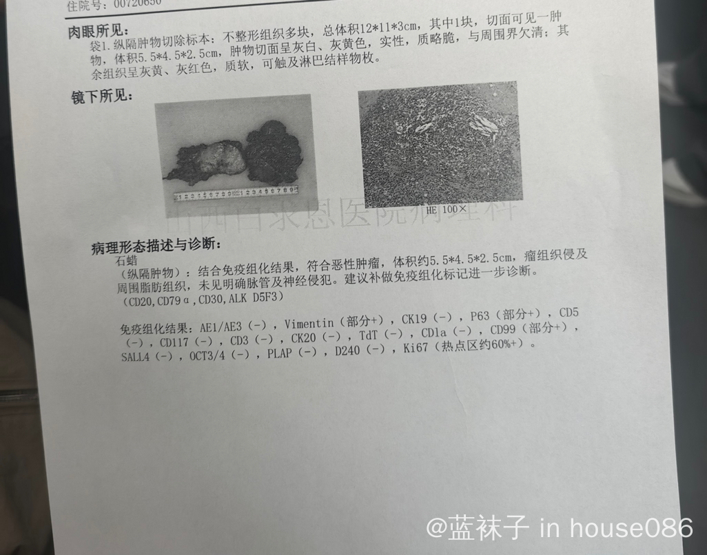 病理报告原发纵膈弥漫大b细胞