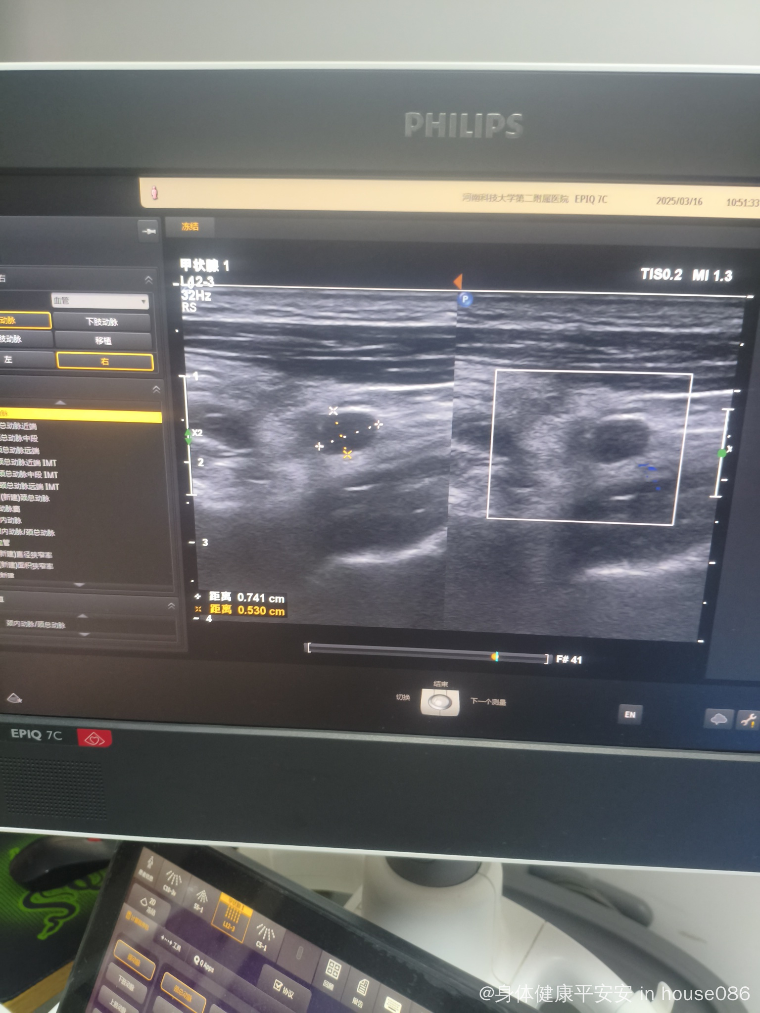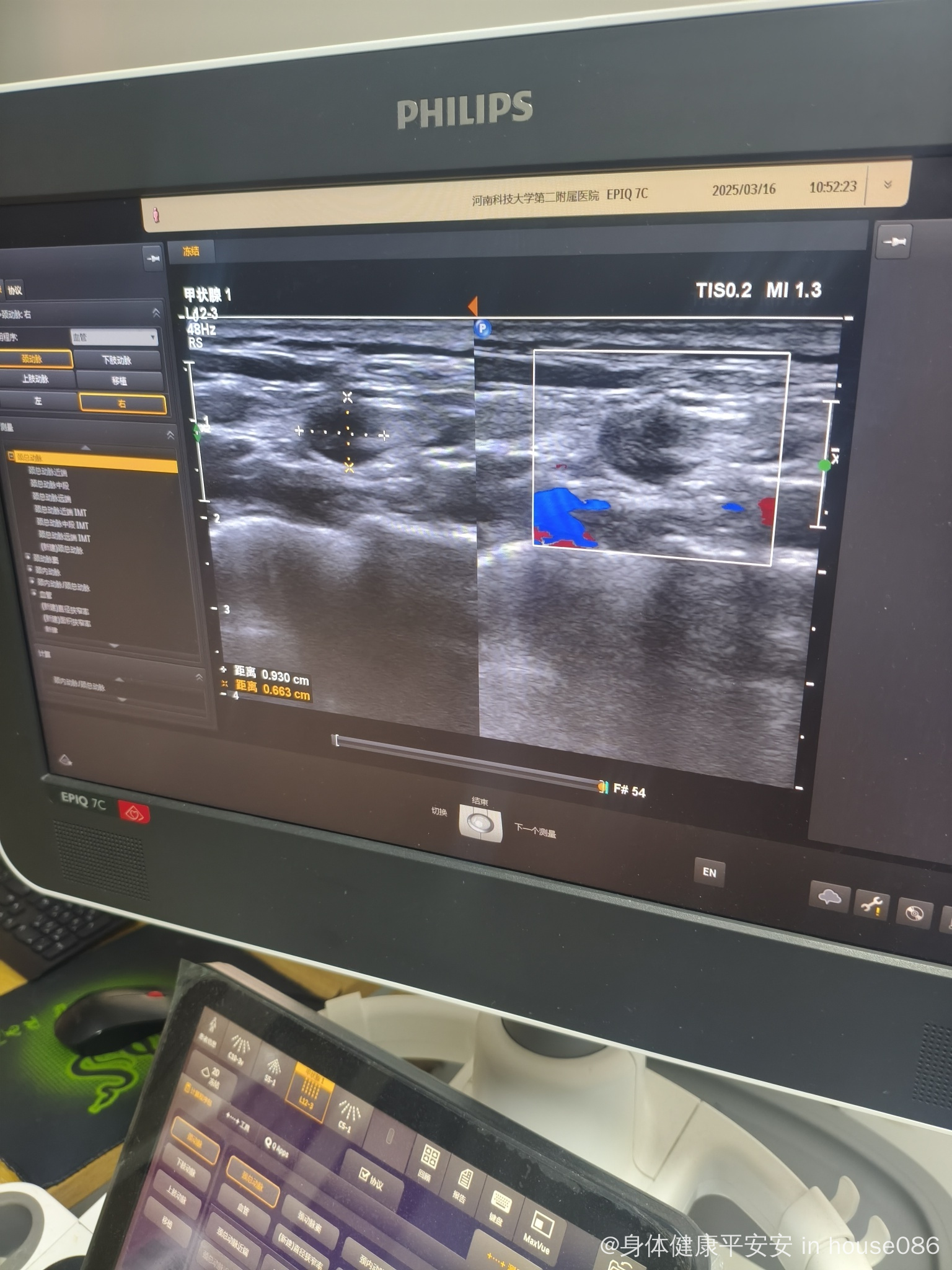 现在情况是媳妇这几天嗓子发炎咳嗽,今天先去做了b超,医生说是左侧锁骨和左侧脖子下有淋巴结异常,淋巴结不大但是纵横比1.4没有淋巴门比较圆,图一是脖子下,图二是现在的左侧锁骨0.93*0.66mm(之前确诊时是1.7*0.8mm)