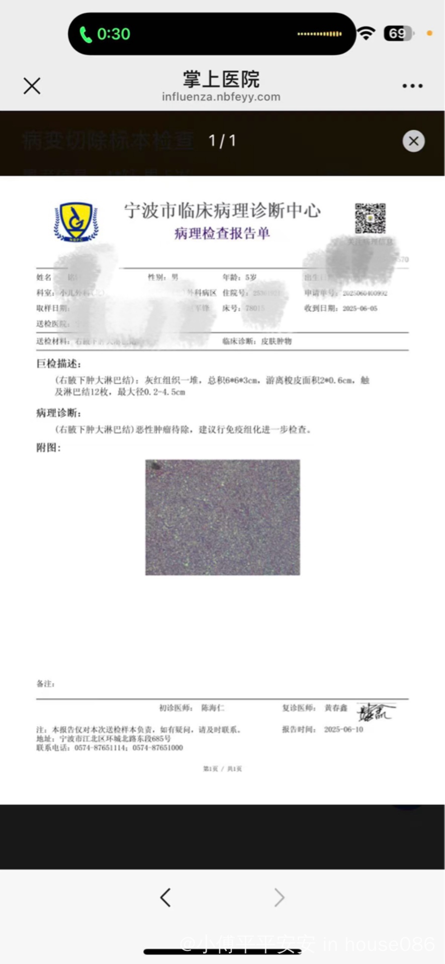 6月9号出报告(附图2),诊断是恶性肿瘤待除,再做免疫组织,9号下午马上安排了免疫组织的检查