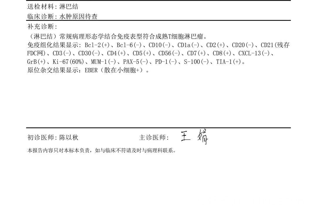 家人确诊外周T淋巴瘤非特异性,Ki67 60% ,Deepseek说生存期可能只有一年,太焦虑了!请问病友亲属们有什么好的建议或经验吗?