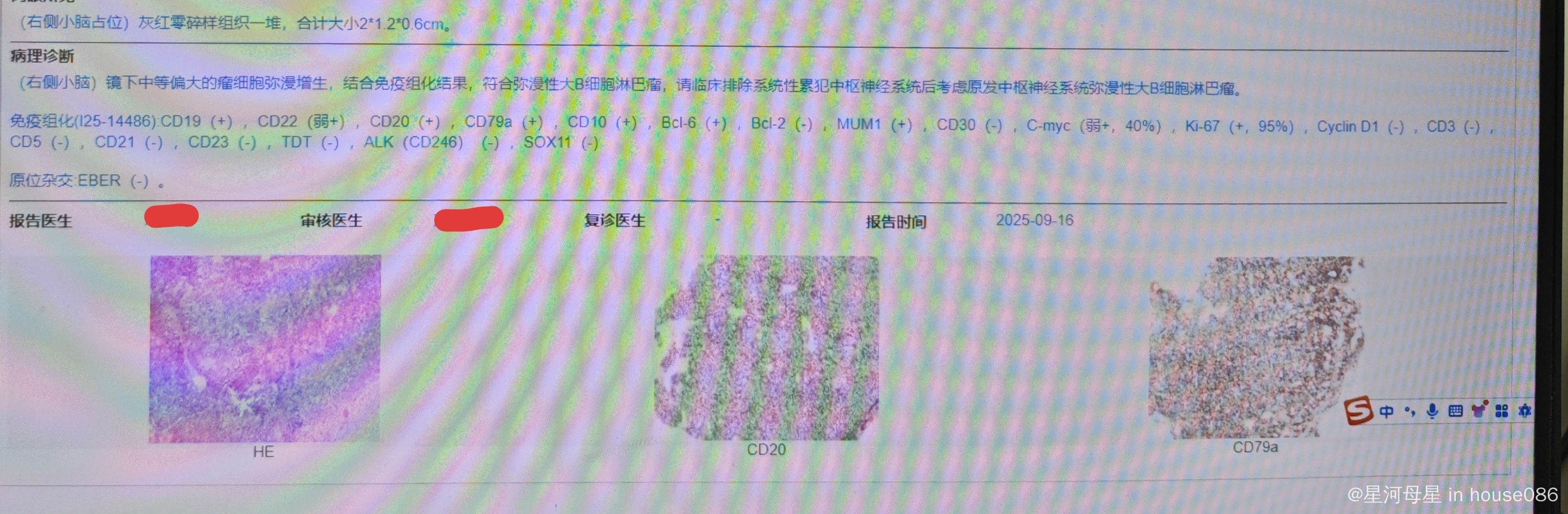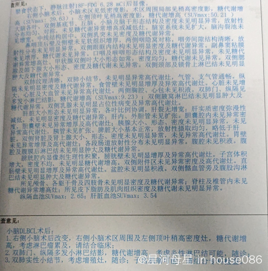脑部原发,基因检测为杂型,不属于七大型,pet-ct显示脑里有残留细胞,其他还好,没扩散