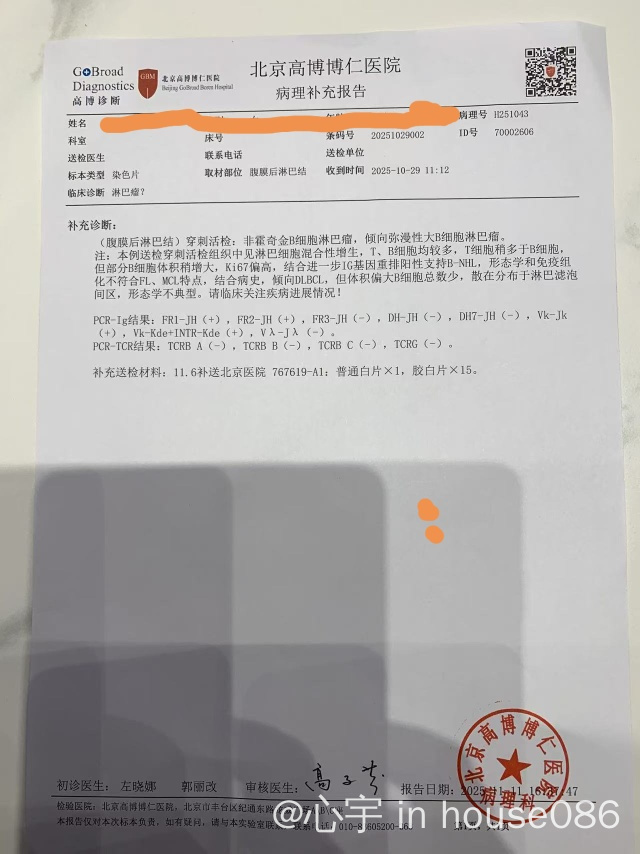 大b细胞少散在分布于淋巴滤泡间区。如果是弥漫大B,不是应该成片分布吗,而且ki67才20%,如果是大b,ki67应该大于40%吧?PET显示病灶广泛,低代谢,病灶小,CD19 CD20,CD21,CD23都是FDC+,FDC是树突状,应该是惰性可能性大吧?有的医生建议马上治疗,有的医生说不像复发,建议口服来那度胺观察一个月,我都观察一个月了,前半个月没进展,后半个月最大的长了1.1cm!如果是大B,为什么要观察?不知道该怎么办了!请各位大神帮忙出出主意呗.