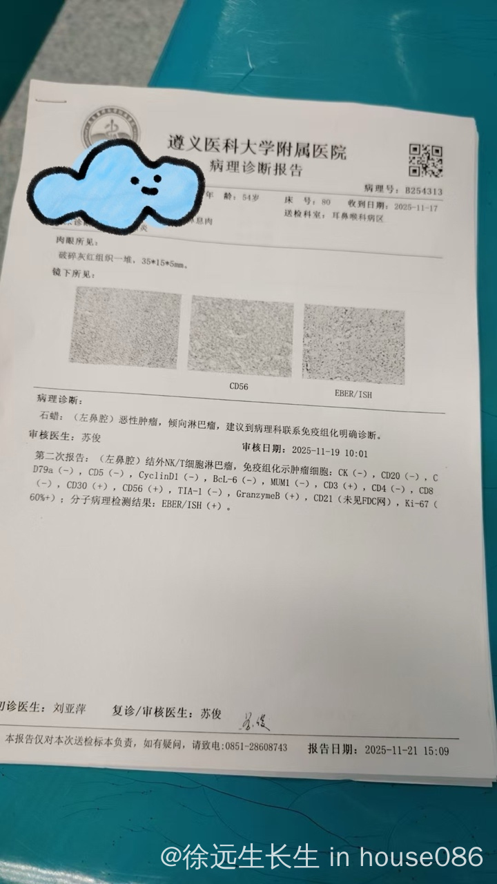 11月17日上午,第一台手术,医生出来告知,切割出来的息肉要活检,要多花钱,我们说没问题。第二次,医生又在呼唤,并展示了一张图,是鼻腔连接耳朵的通道,布满了白色凸起的组织,心中警铃大作,医生说手术可能要暂停,怀疑是癌。这个消息让我头脑发懵。40分钟后,医生第三次呼唤,拿着结果说他们诊断没错,真的是癌。内心震惊又后悔,自责懊悔的眼泪不停地流淌。懊悔为什么第一次手术不来市级医院做,为什么春节是都检查了还不让他继续手术,为什么自己对他那么不关心要任由他在外面承受痛苦。我明明还可以拥有一个健康的爸爸,他才54岁!