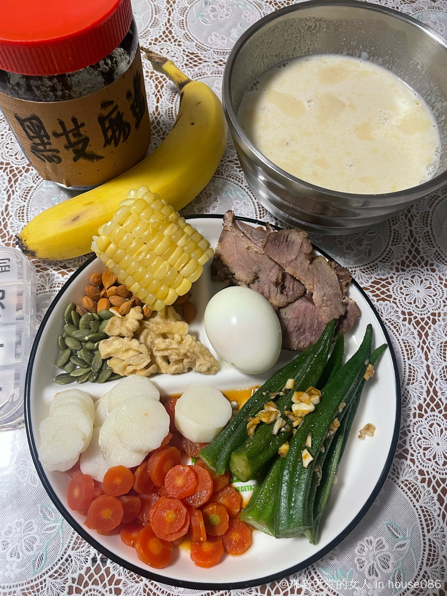 ✅碳水与膳食纤维:玉米、山药、香蕉补充复合碳水,秋葵、小番茄富含膳食纤维,促肠道蠕动;