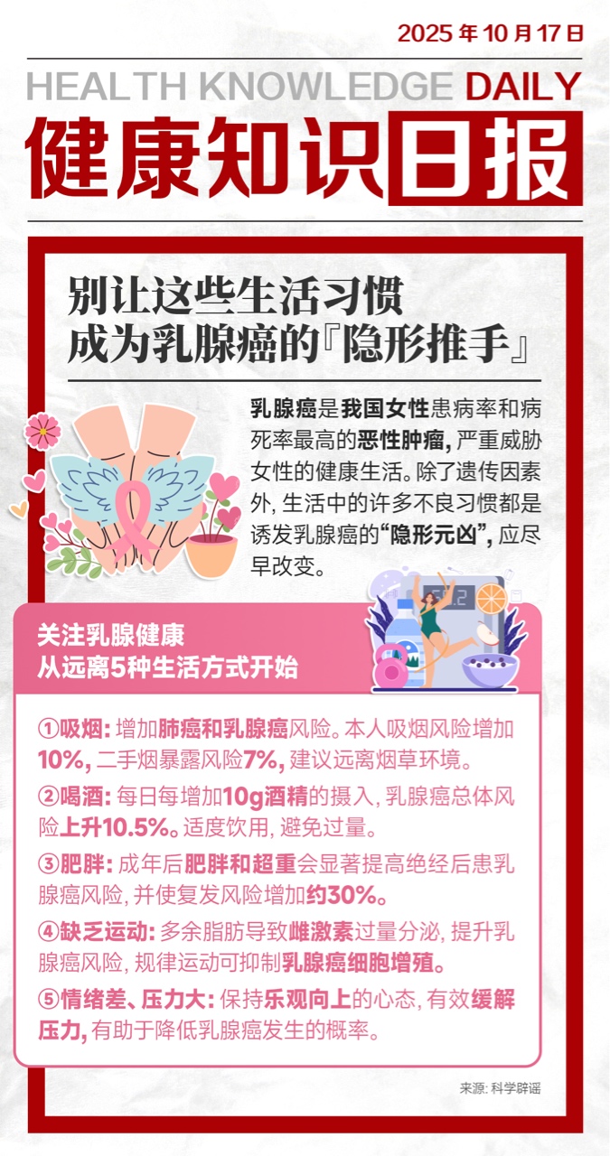 今天是粉红丝带关爱日,不仅关乎乳腺健康,更是对美丽的守护,主动远离这五件事,共同呵护女性健康,传递温暖力量,愿每位女性被爱意包围!
