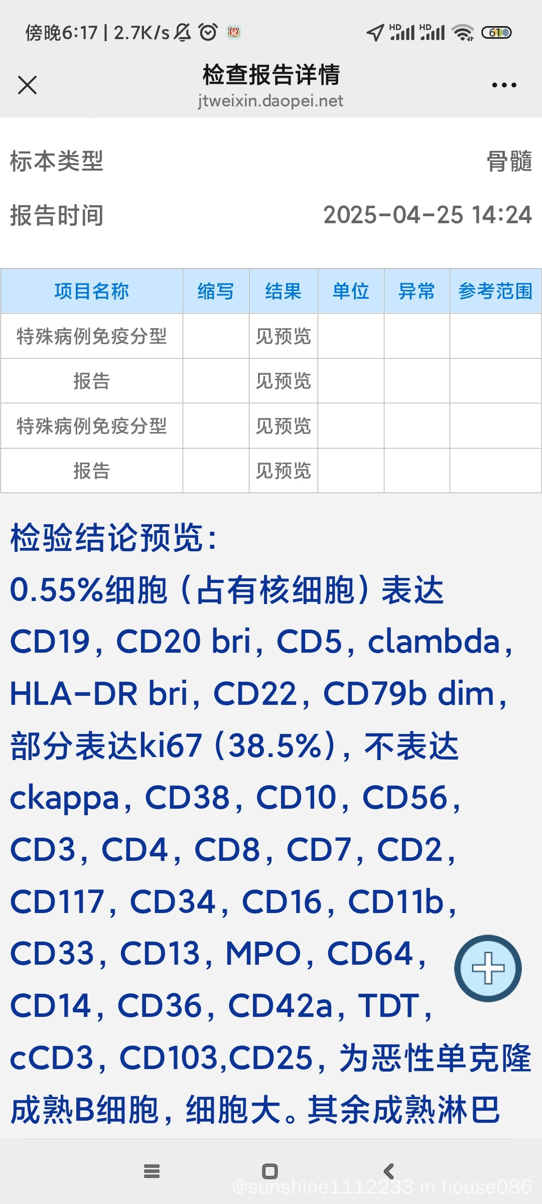 回天之力 发表于 2025-10-19 17:37 恭喜恭喜!想问一下累及骨髓的比例高吗?