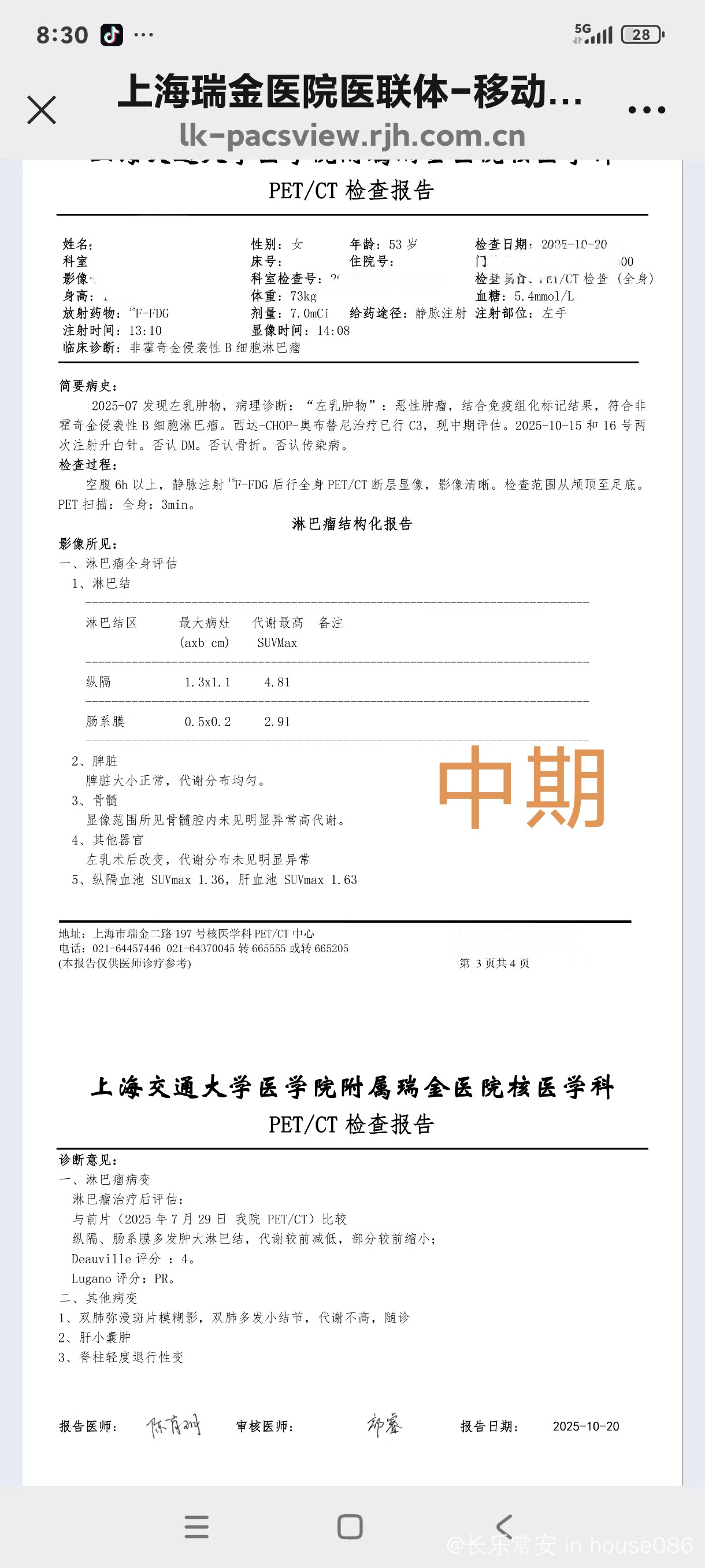 纵隔病灶感觉变化不明显,看好多病友中期就cr,对我们这个结果有点焦虑