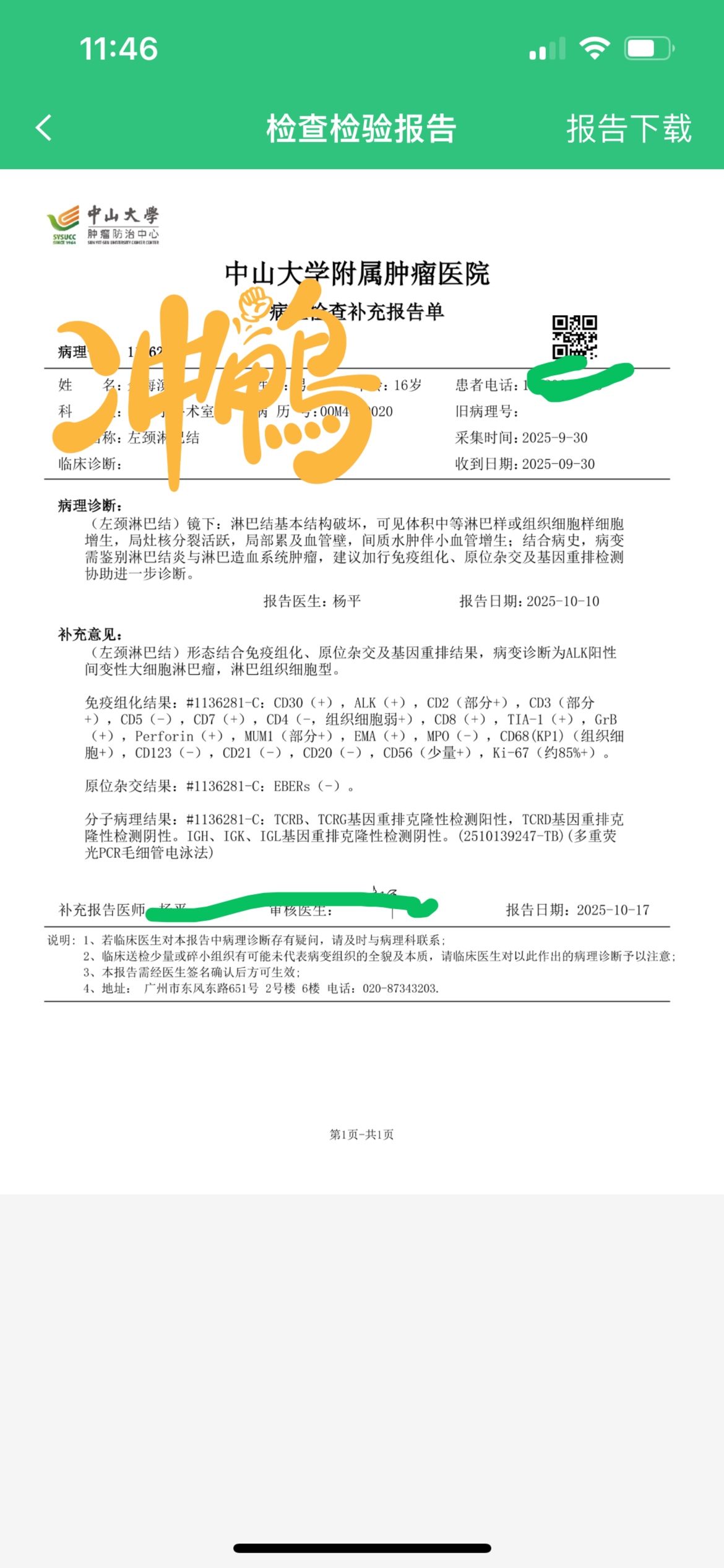 一大瓶营养快线 发表于 2025-10-22 22:38 这个是靶向药了。我们也是间变大,但是我们没有用靶向药,就直接上普通化疗药。用了不行的话,才上靶向药