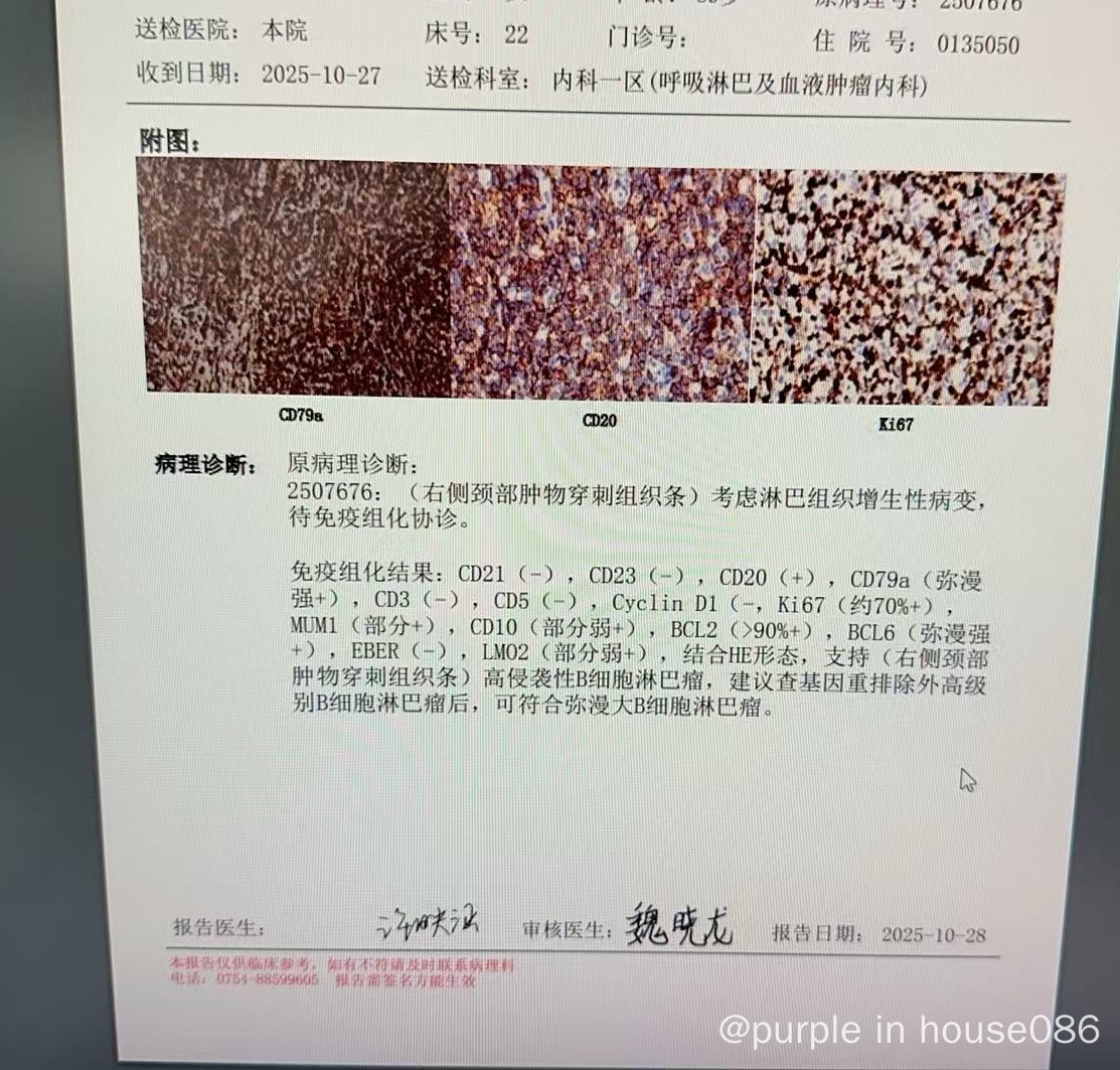 anl 发表于 2025-10-29 22:39 不可能预后很差。加做一项c myc免疫组化 看是不是双表达淋巴瘤