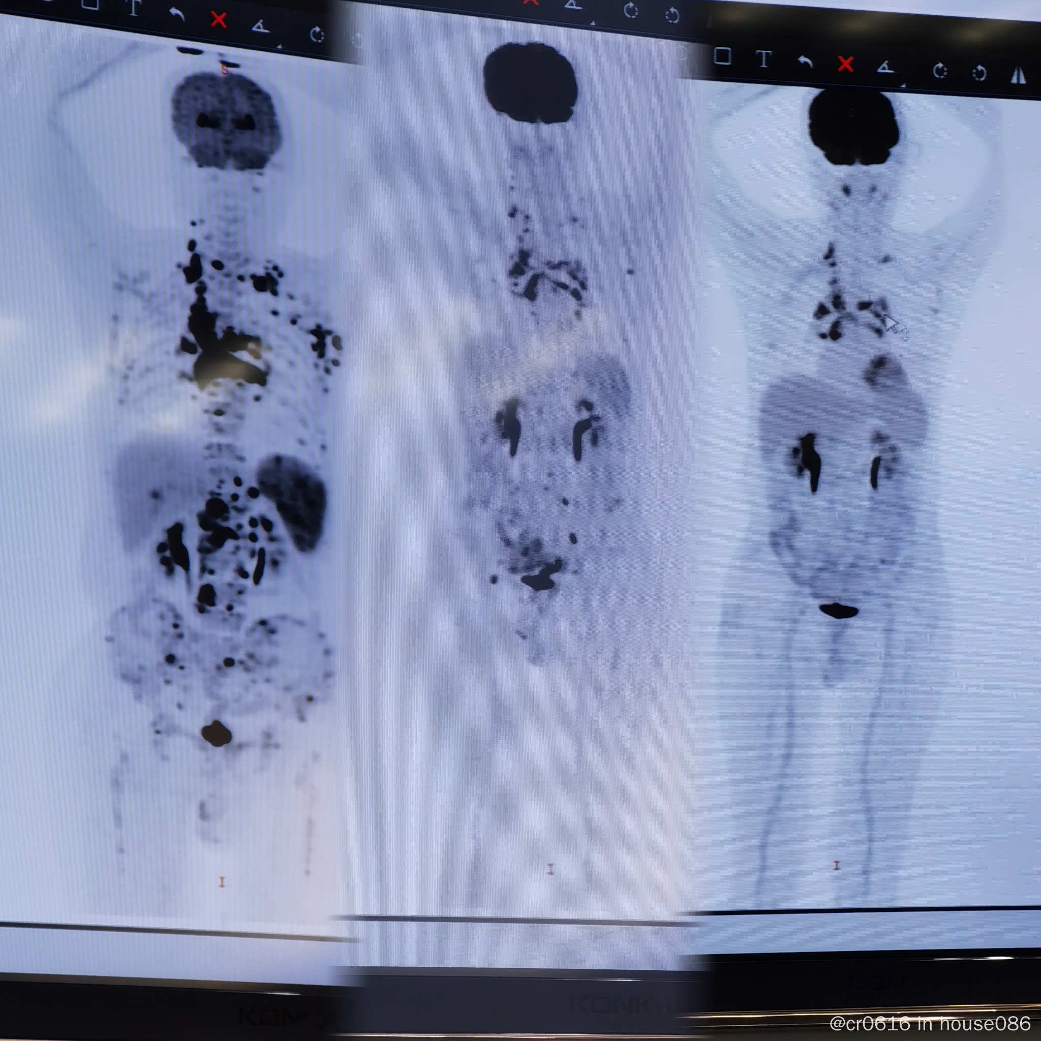 二疗后照了PETCT评分也是五分,在bv➕pd1的基础上加了AVD(考虑到老人心脏不好剂量减半),但是打多柔比星脂质体的时候老爸觉得难受,就没用这个,达卡和长春新碱继续用。四疗依然是这四个药。前天中期评估依然是五分,但是肿瘤还是继续有缩小,医生的意思是在药物这么温和的情况下有这个效果是很不错的了,我们也还是认同的,毕竟老人家体质是一次比一次好。五疗先还是继续治疗,同时今天借病理寄去高子芬会诊,等病理报告出来继续研究下一步怎么走。