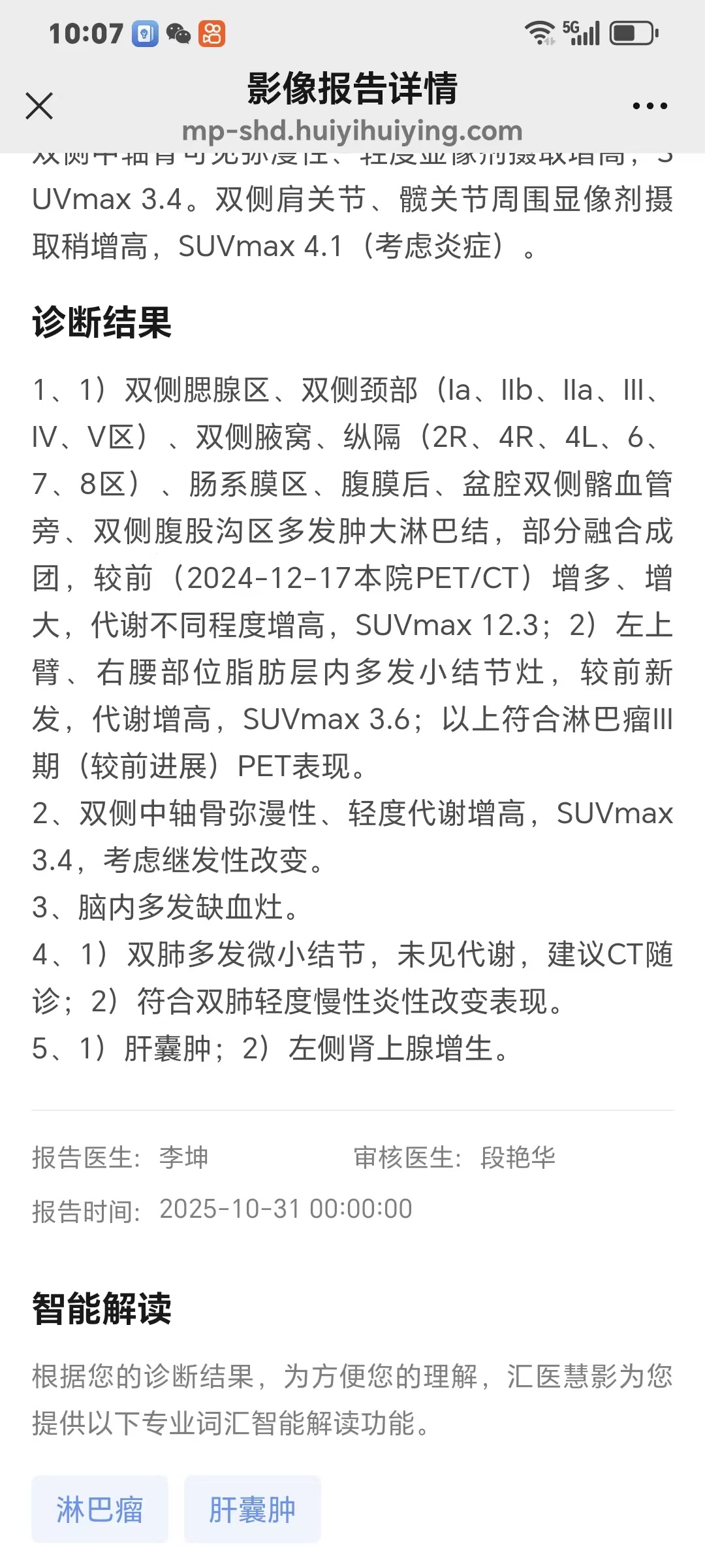 2022年查体发现淋巴结增多,未进行深入检查;2024年确诊滤泡性淋巴瘤后未达到治疗指征,2025年10复查达到治疗标准,首次开启治疗。想要求助下友友们,山东济南地区惰性淋巴瘤推荐哪位医生?病理送去哪里比较好?诊断明确的情况下是否需要去北京天津再找专家看看?去的话有推荐吗