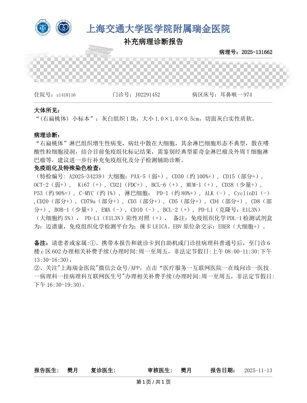 淋巴瘤病理报告出来 求教还要再做进一步免疫组化是要再 ...