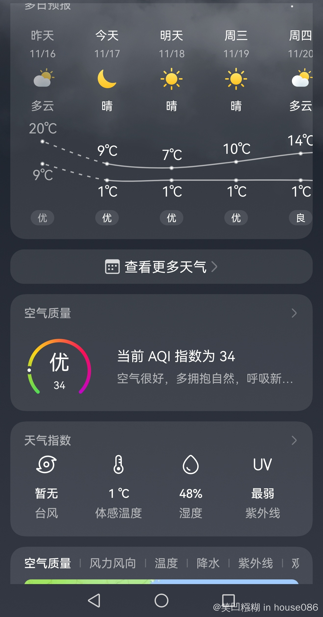 今天的天气降温厉害,昨天最高20度热死了,今天就降到最高9度最低1度,还刮起了大风正是冰火两重天啊……