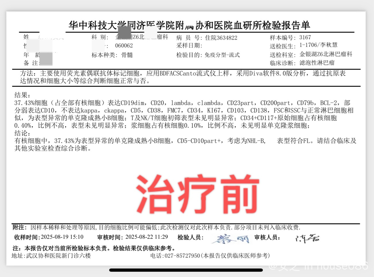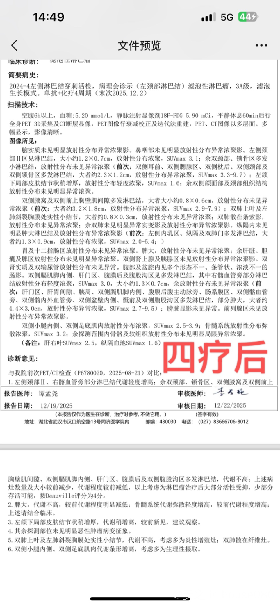 患者30岁,治疗前4期,骨髓侵犯37%,使用Gchop方案治疗,一疗血象太低第二针佳罗华拖了7天打,三疗后卡肺耽误21天才四疗,目前中期评分4分,是否不理想,是否患方案。