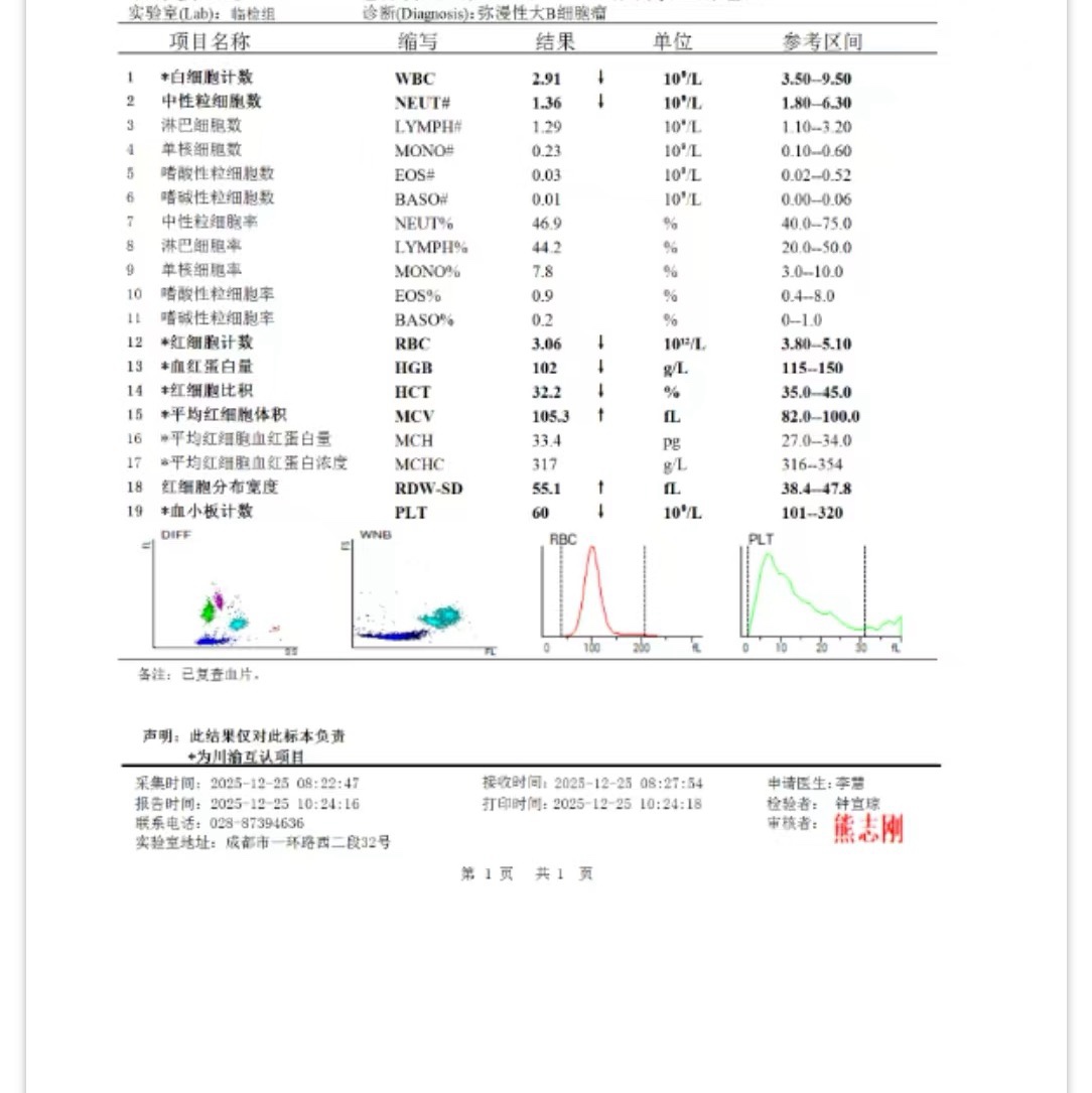 橙色雨丝 发表于 2025-12-28 13:11 血象没有完全恢复,血小板还是需要注意。