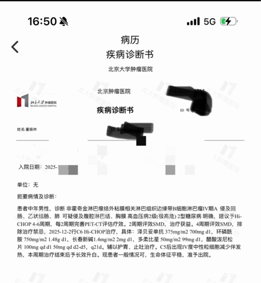 求求大神帮忙,目前边缘区淋巴瘤IV期,Hi-CHOP治疗六次 ...