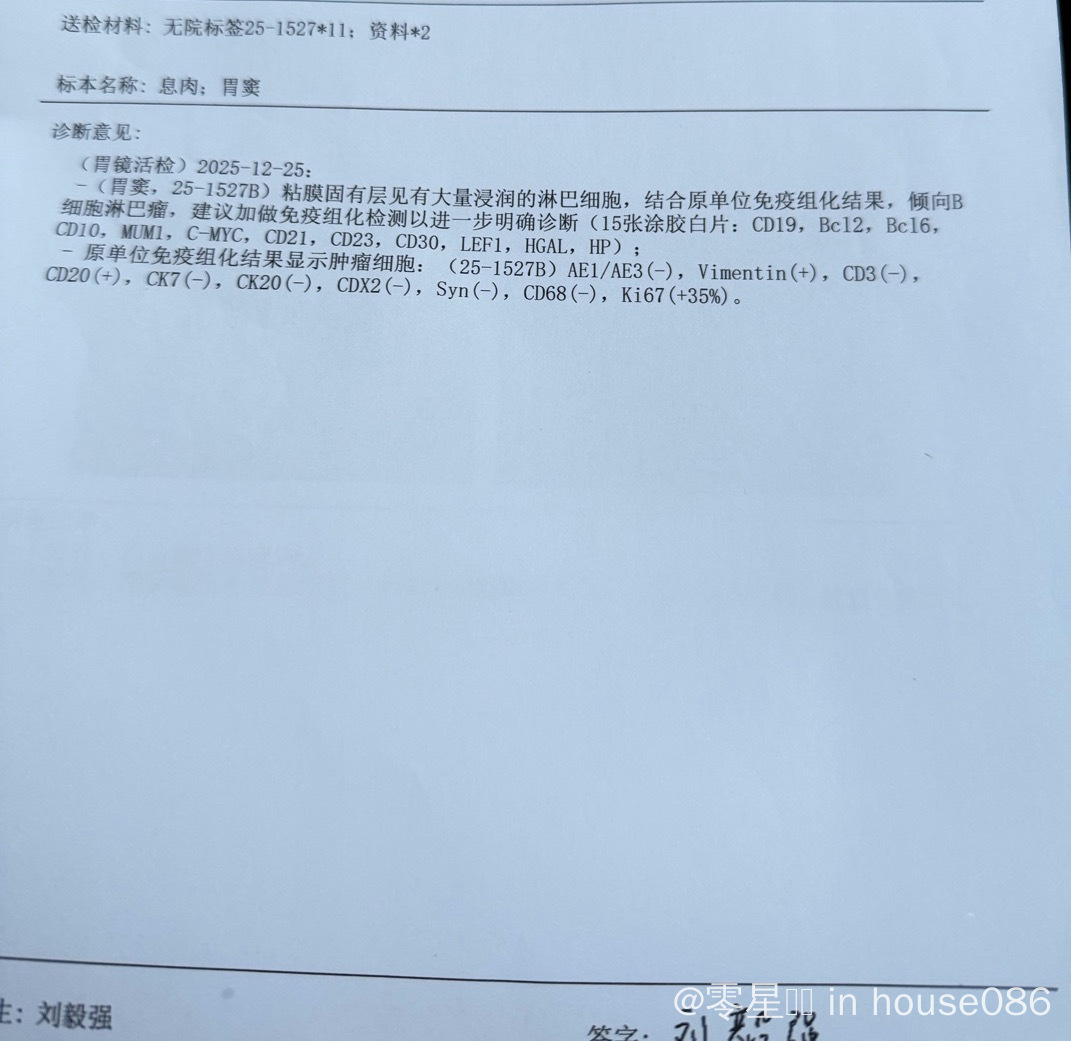 母亲55岁因为打嗝做个胃镜,结果病理倾向b细胞淋巴瘤现在北医三院重新做病理和基因排序结果还没出来,医生说可能弥漫大b或者黏膜相关的,有病友给点意见吗?
