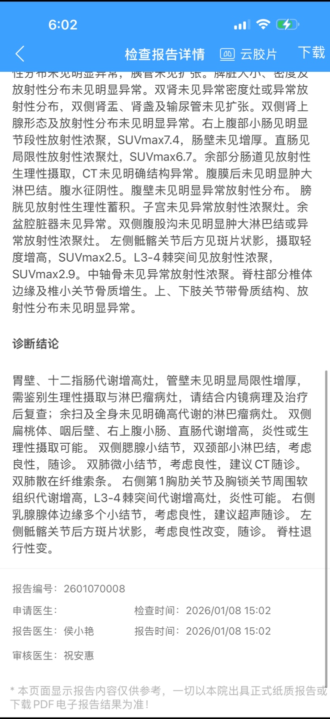 最后是北医三院病理科做的吗?胃镜检查报告?增强CT 及PET-CT检查报告?