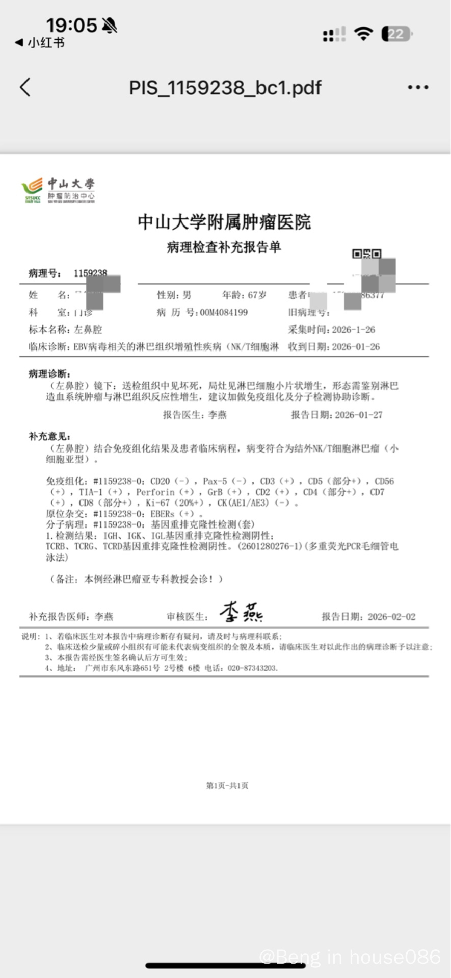 病理报告NK/T细胞淋巴瘤