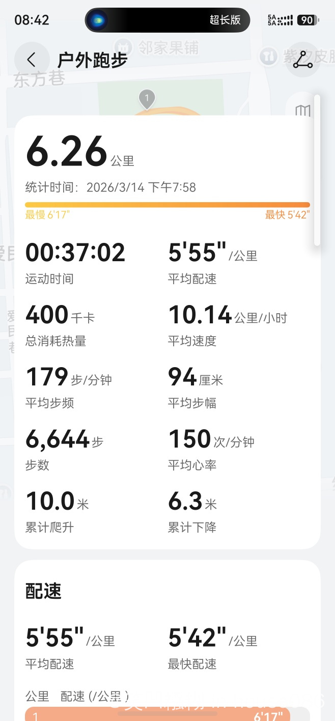 昨天跑了一个长距离,今晚就打卡了一个身体排酸的6.26公里早早结束回家,明天继续跑休一天。