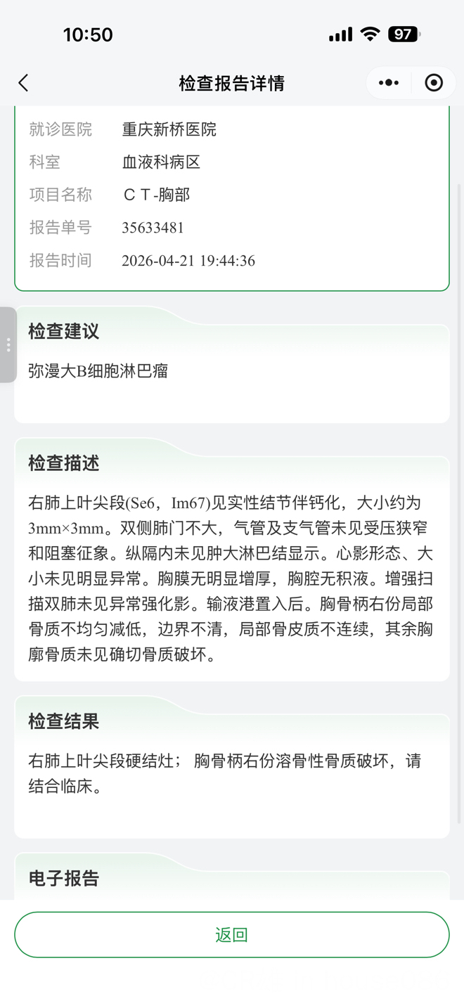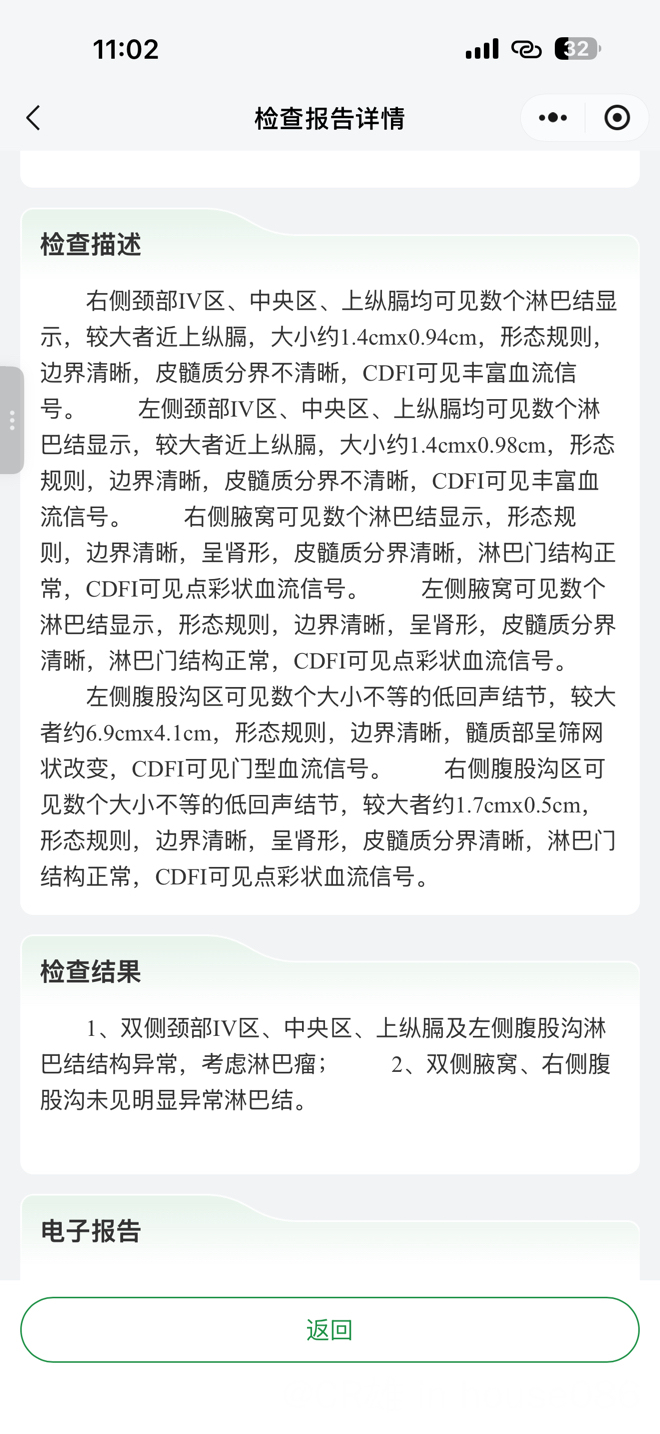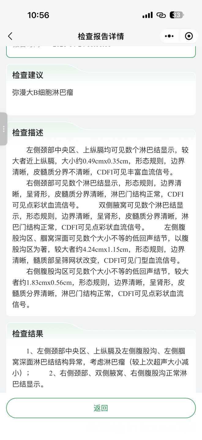 但是彩超的结果还是让我心里悬挂的石头稍微放下了一点点,不过我知道还得是靠后面中期评估的petCT。
