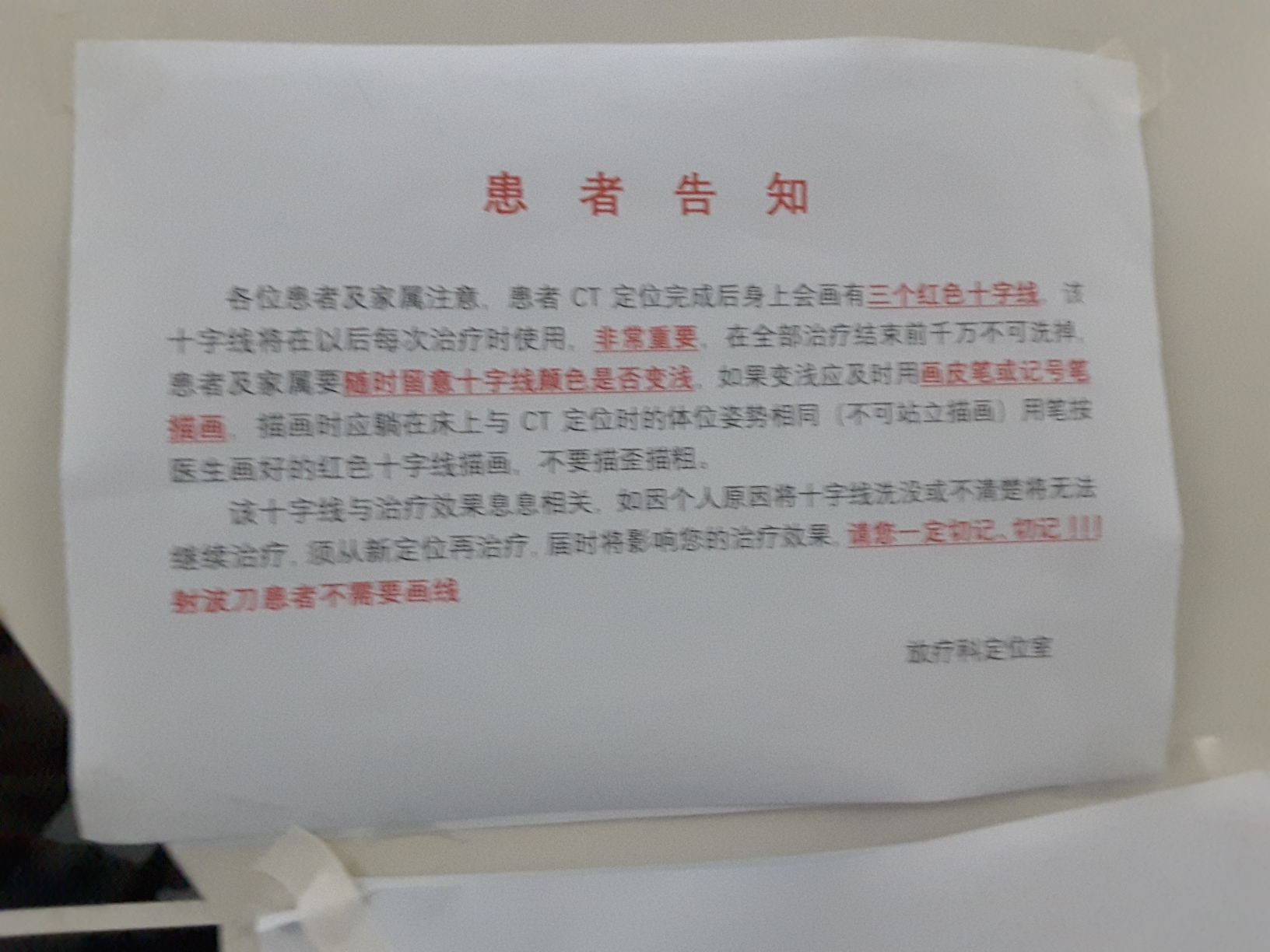 我当时洗澡划线处轻轻沾沾,其他的地方好好洗,洗掉了定位不准,影响治疗效果,定位是CT模拟定位的。