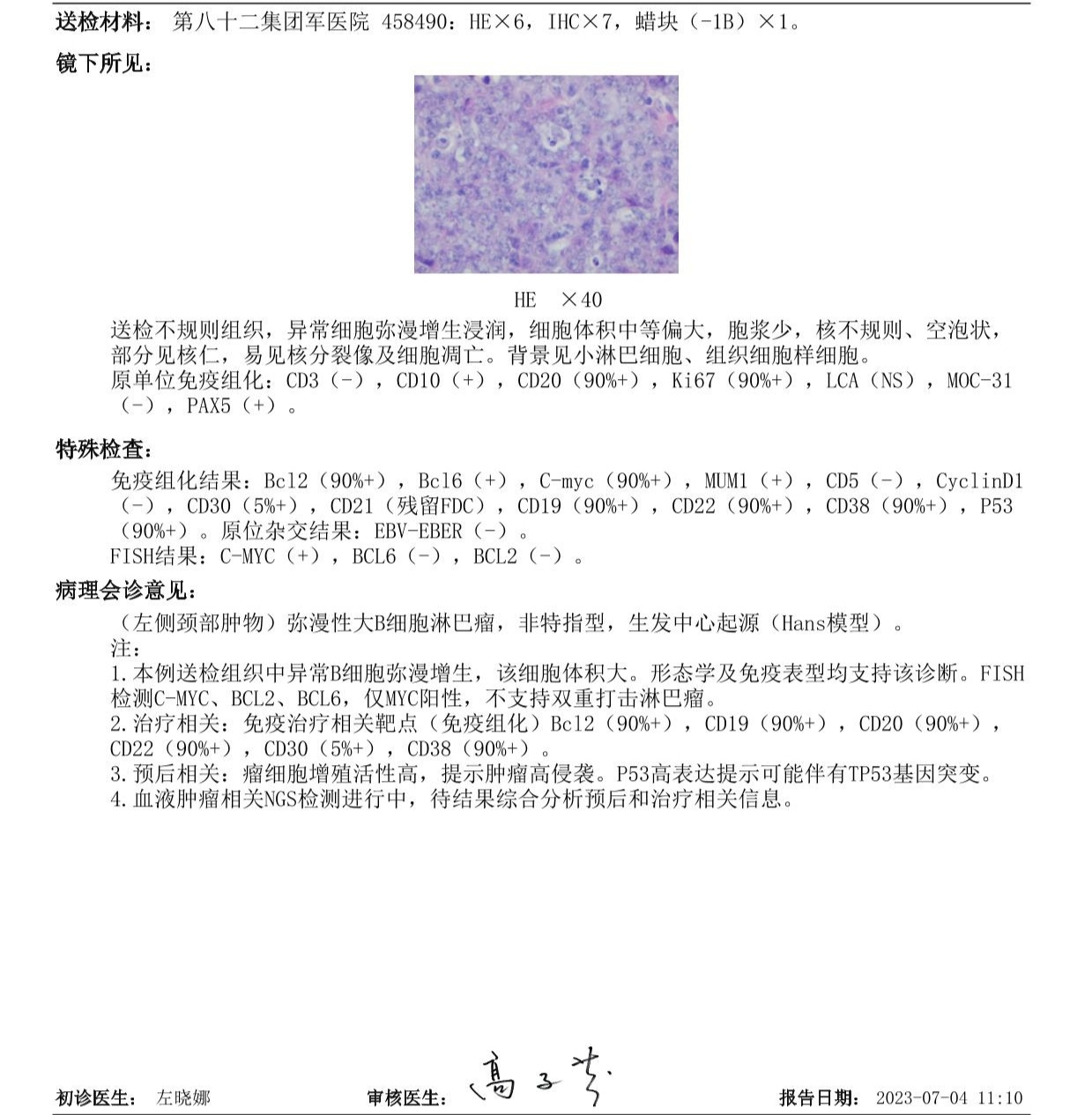 战斗先生 发表于 2023-07-25 21:40 根据免疫组化和基因, 如果用rchop治疗,病人好受,但是淋巴瘤难治。 如果用da+r+epoch治疗,病人难受,但是淋巴瘤好治。