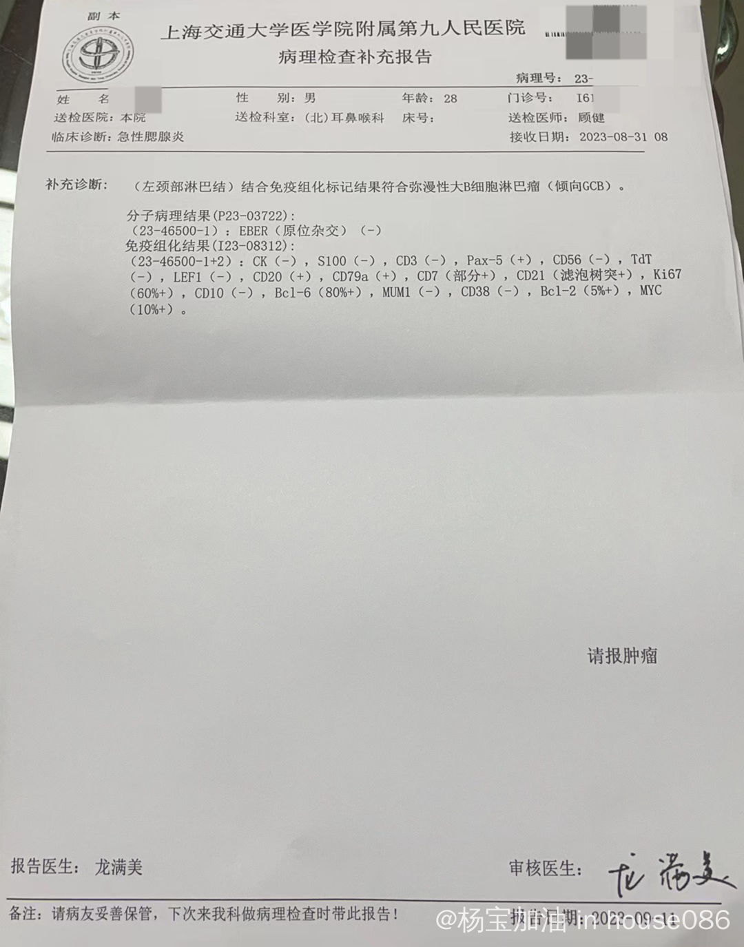 我们目前在瑞金王黎那边治疗,医生说rchop方案,四次化疗以后看petct评估,正常来说四次化疗就能结疗了。