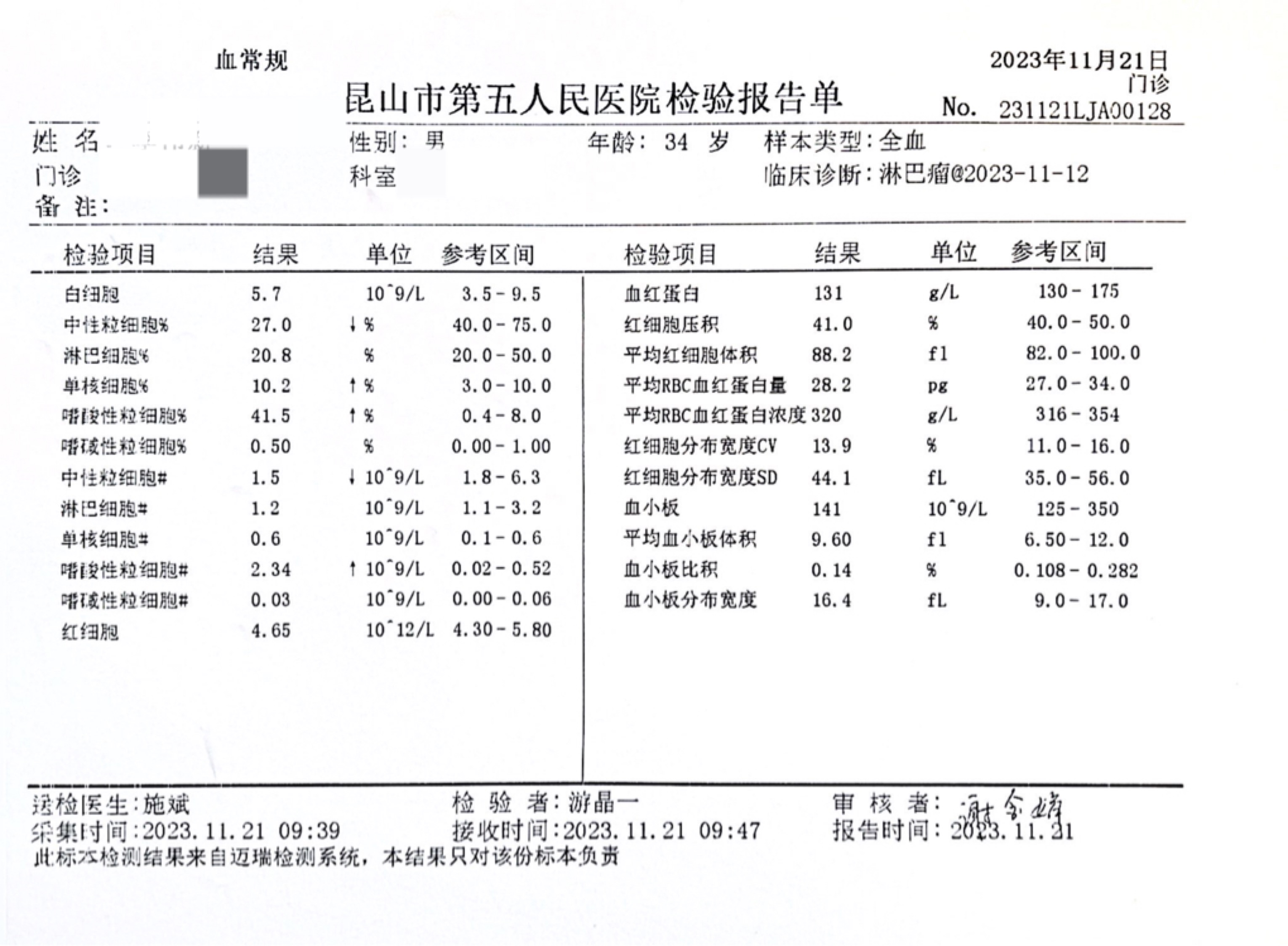旭辉 发表于 2023-11-21 11:58 你发现的时候只有嗜酸性粒细胞升高,还有别的症状吗?