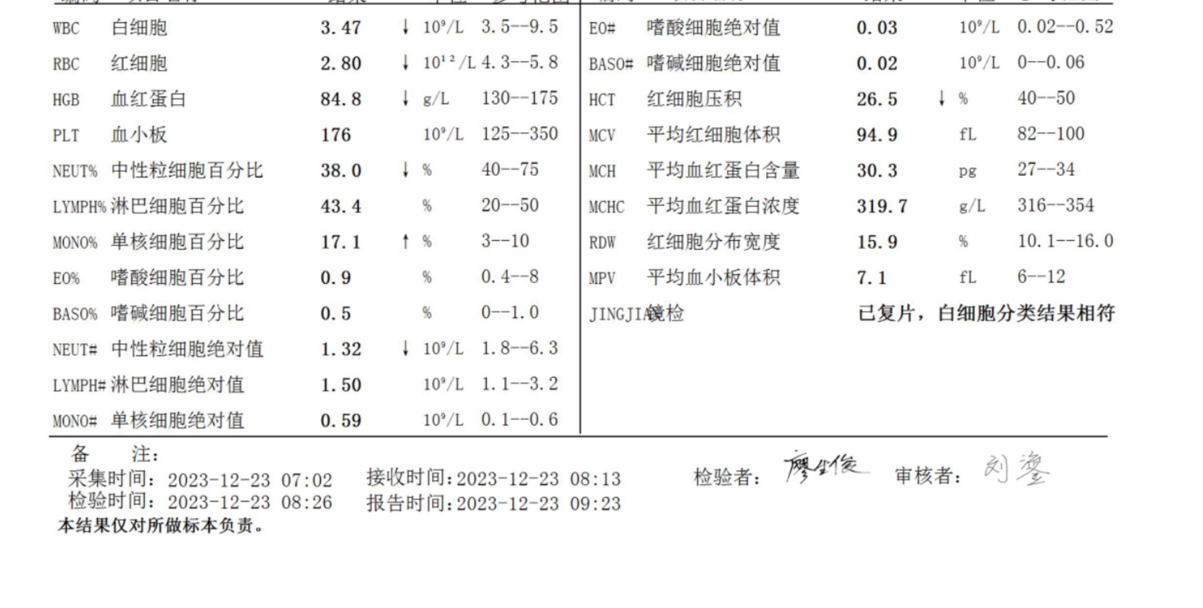 面面条儿 发表于 2024-01-08 19:52 昨天雨丝大大说贫血一般就需要治疗了 今天问了医生也这么说的