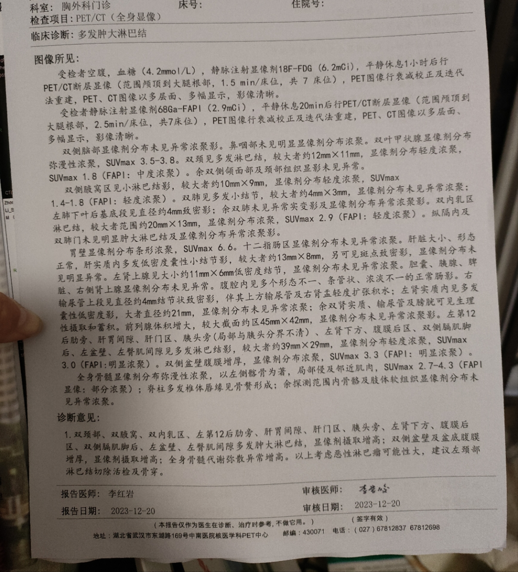 面面条儿 发表于 2024-01-08 19:46 好像因为白细胞低 贫血 贫血就算治疗指针了 腹膜后的有个3CM左右的 锁骨和脖子附近有几个小的 不知道是算多发吧 虽然petSUV最高只有3.0但是 架不住贫血啊