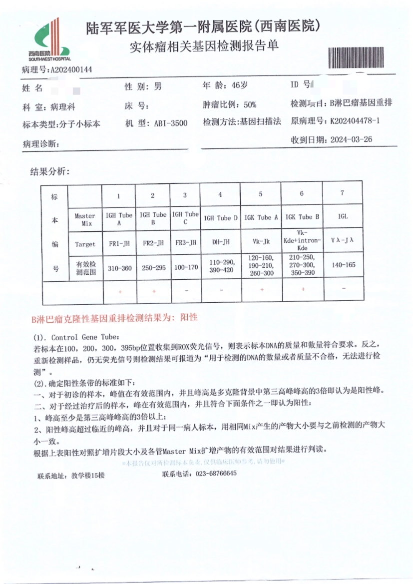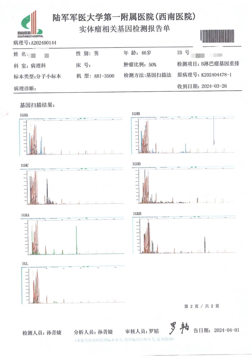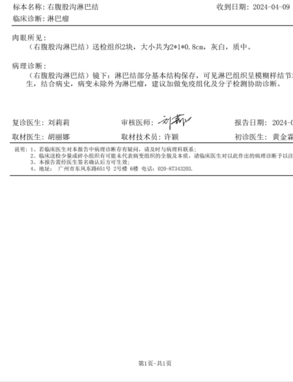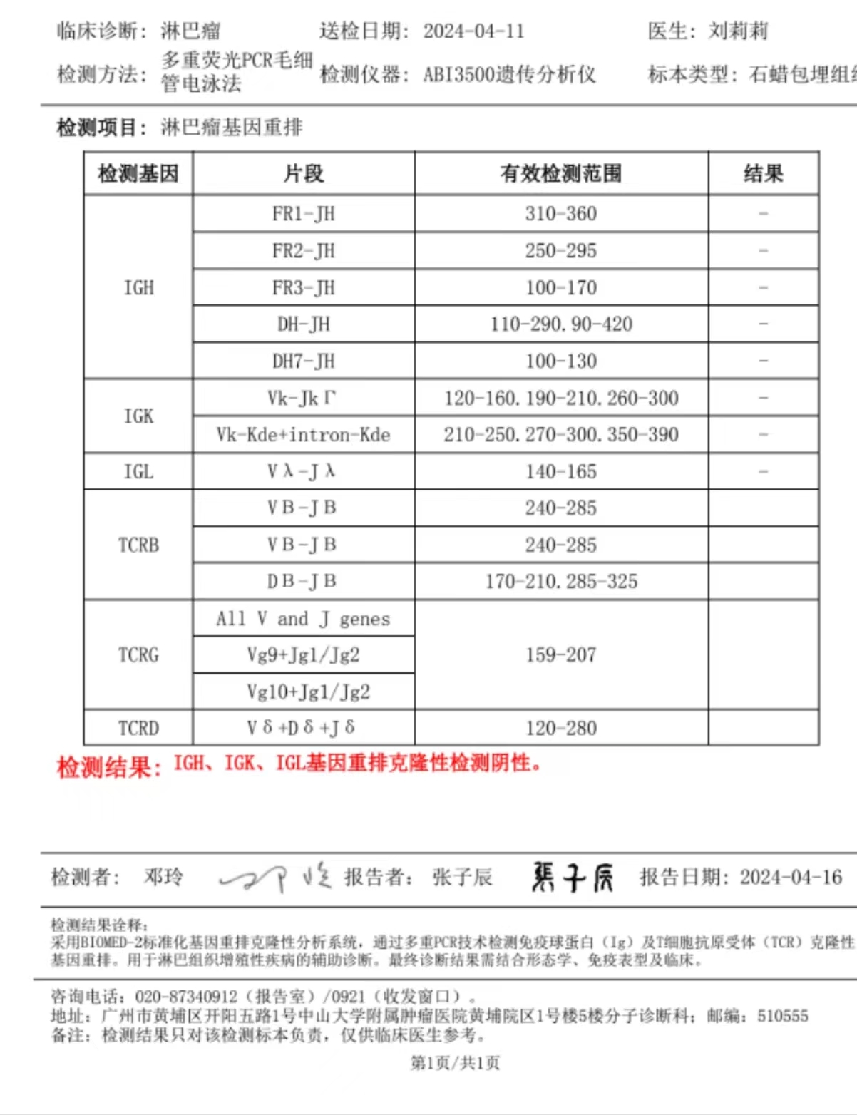 不确定 发表于 2024-4-16 21:07 雨丝大神请解惑:上周在中肿取了右侧腹股沟淋巴结来做病理检查, 到今天已出了二项结果,其中IGH,IGK,IGL ...
