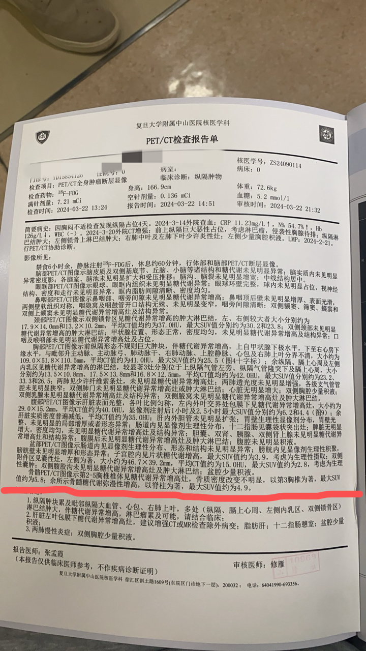 指定能行 发表于 2024-05-23 18:32 雨丝大神,翻了很多您之前对纵隔大b的评论,请教下我这个是属于您说的结外2处以上侵犯预后不良吗?心包、肺、椎骨有累及。心里很忐忑。需要考虑中枢预防吗?@橙色雨丝