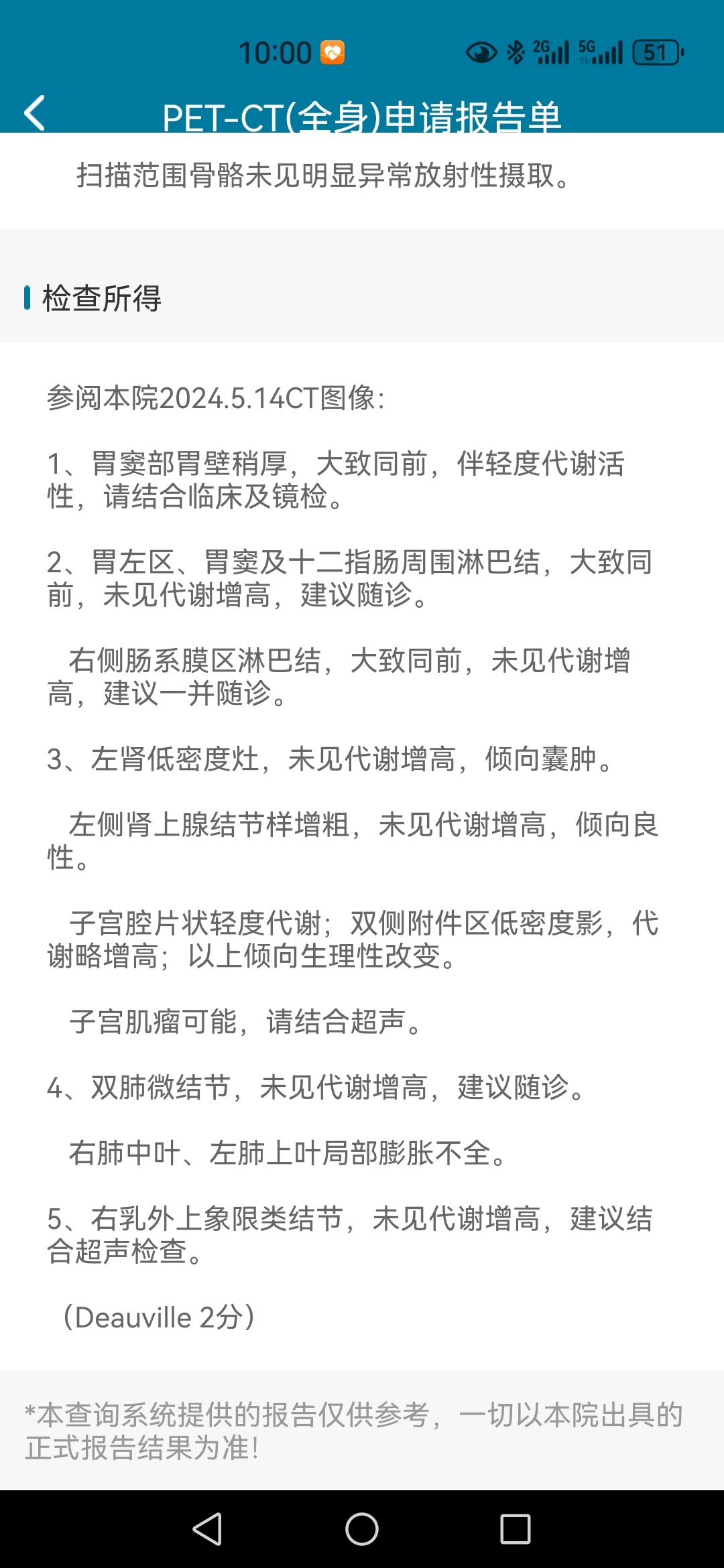 胃淋巴瘤4疗后PET/CT