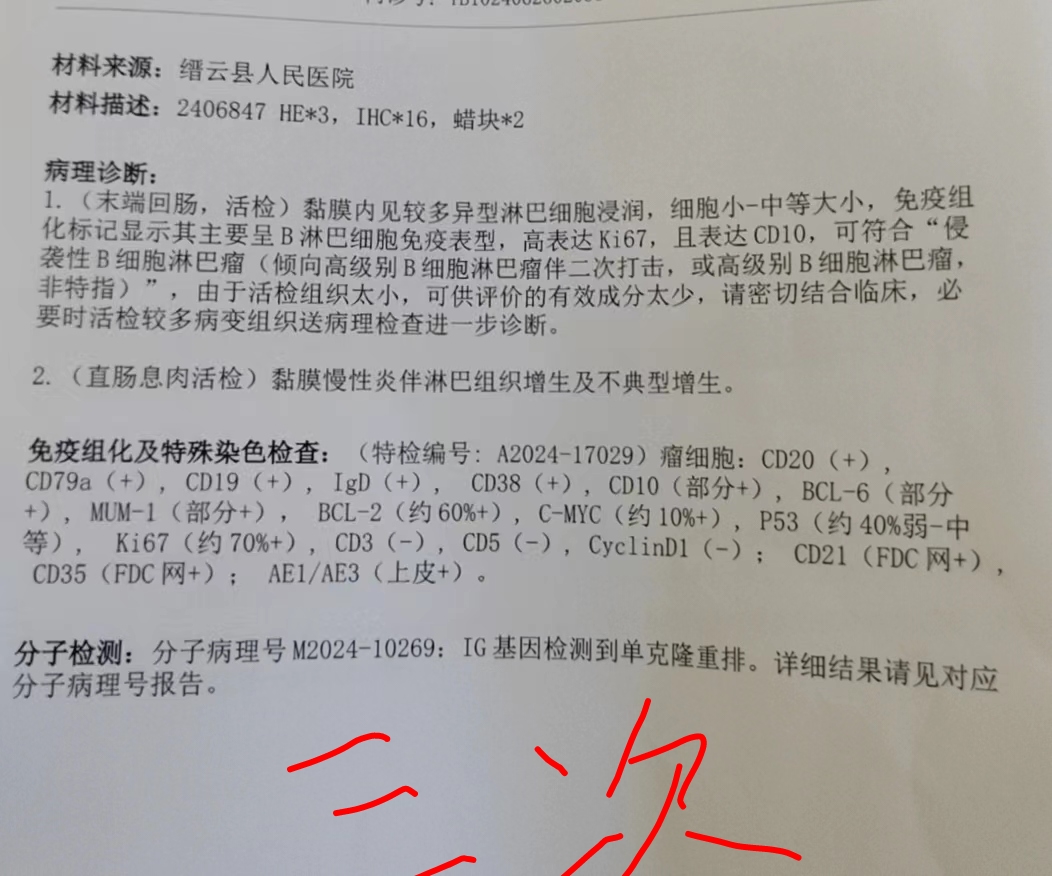 不需昵称 发表于 2024-07-17 16:51 是的。免疫组化是无法确认双打击的。雨丝大神也说了,c-myc值不高,都达不到双表达的阈值。不知瑞金王主任从哪里判断出双打击的可能性比较大。