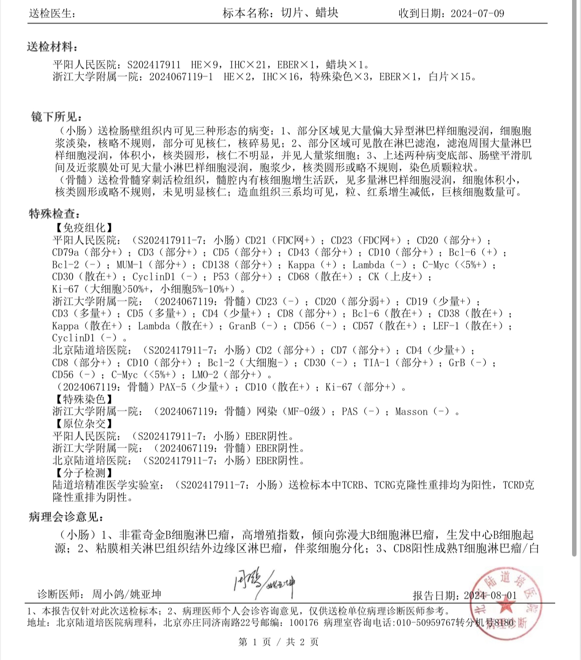 1,普通化疗,可以同时照顾到弥漫大b和T细胞淋巴瘤。但是医生告知,很有可能一疗都扛不过去。问我能不能接受。