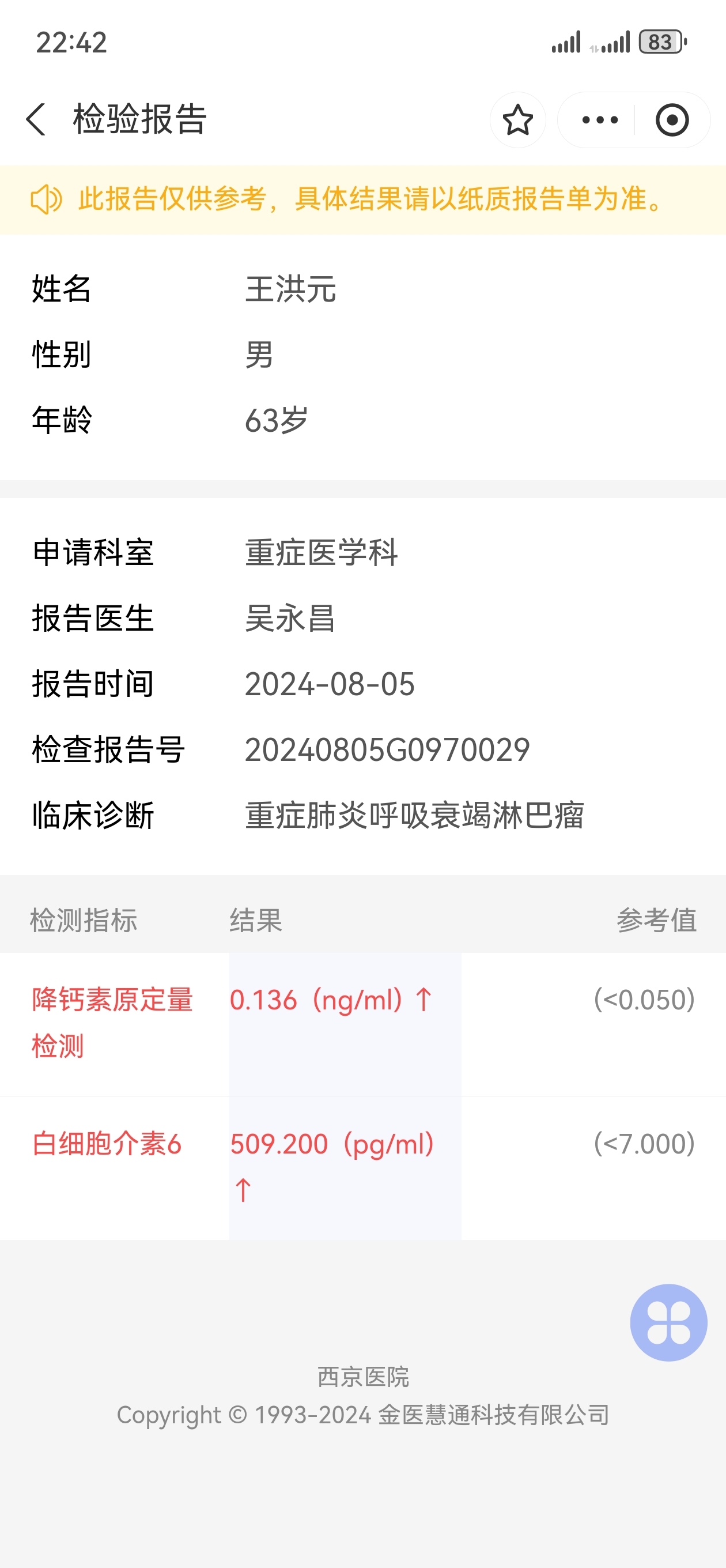 云起雪飞 发表于 2024-08-07 09:12 先治疗肺炎,我父亲6疗后肺炎,住了29天医院,现在挺好