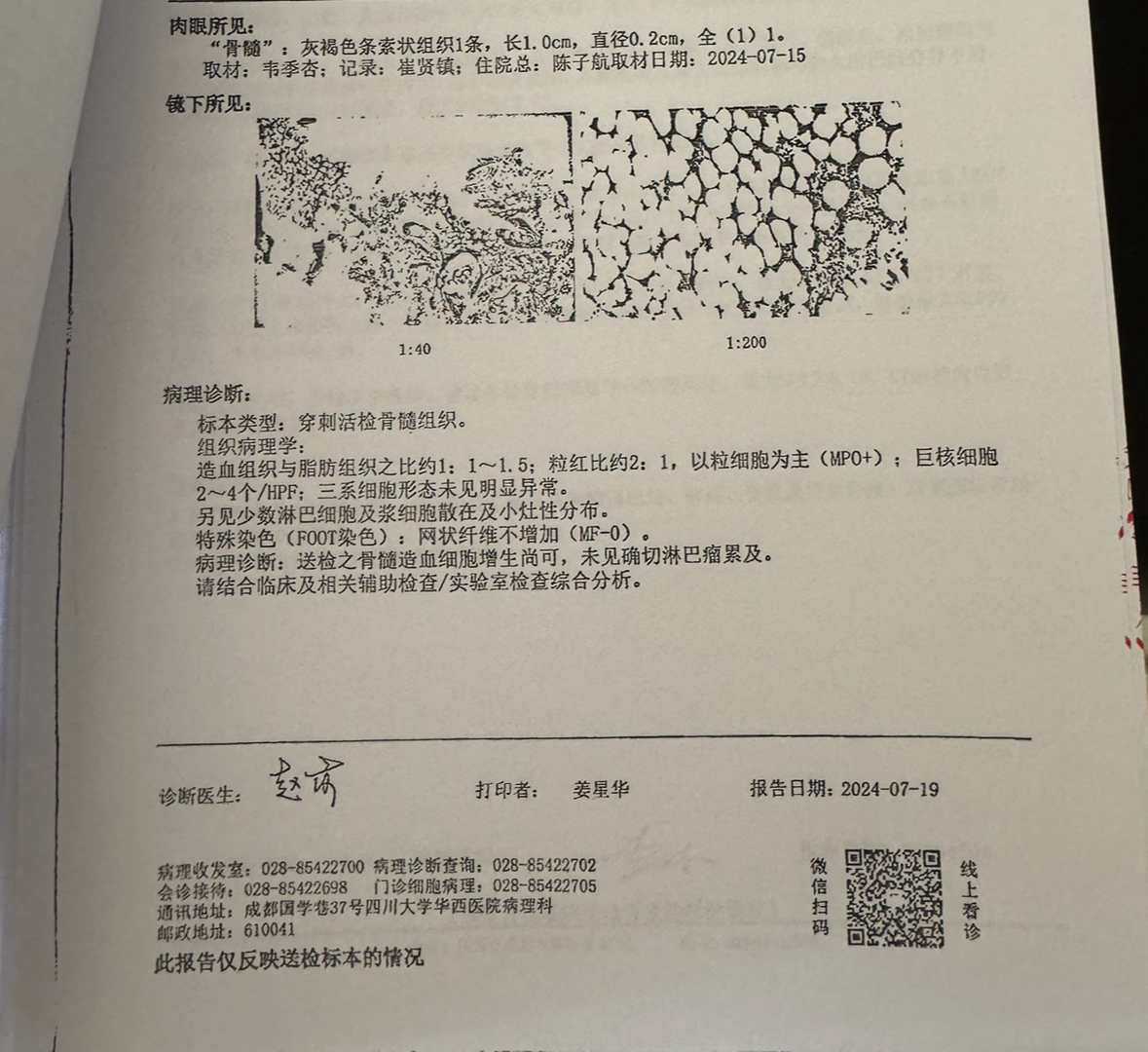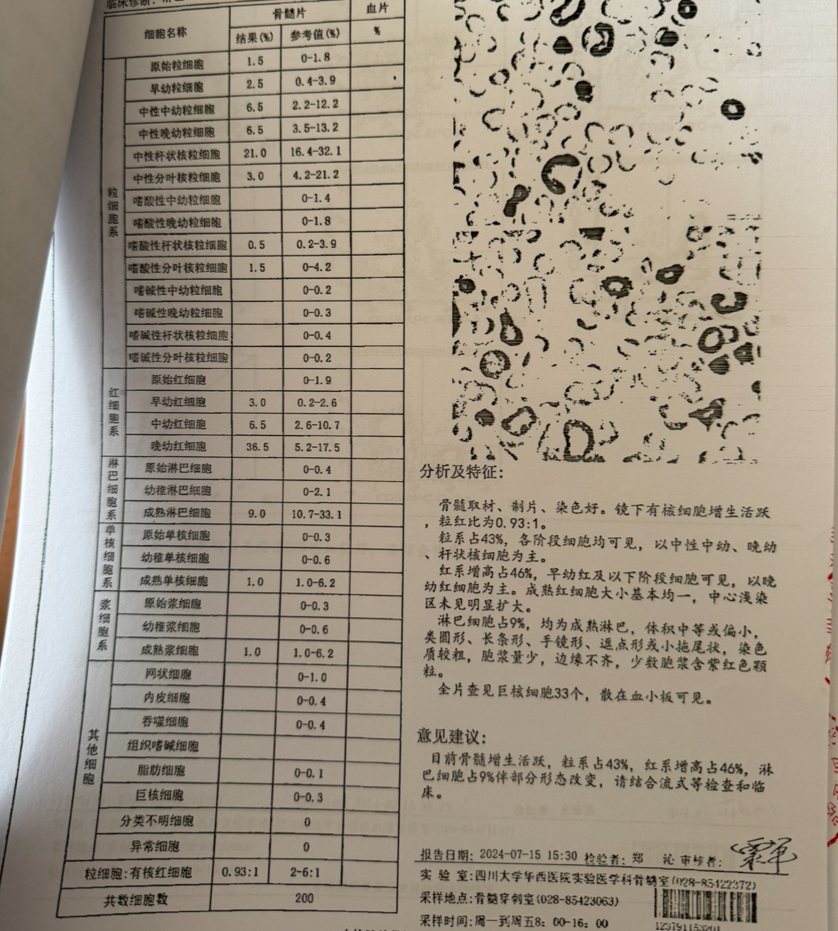 雨丝你好,还想想问下这个有没有骨髓累及呢。住院医生给我说累及,但我没看到相关的报告。