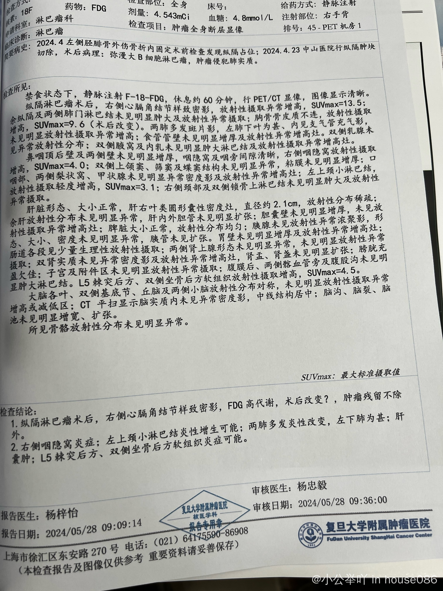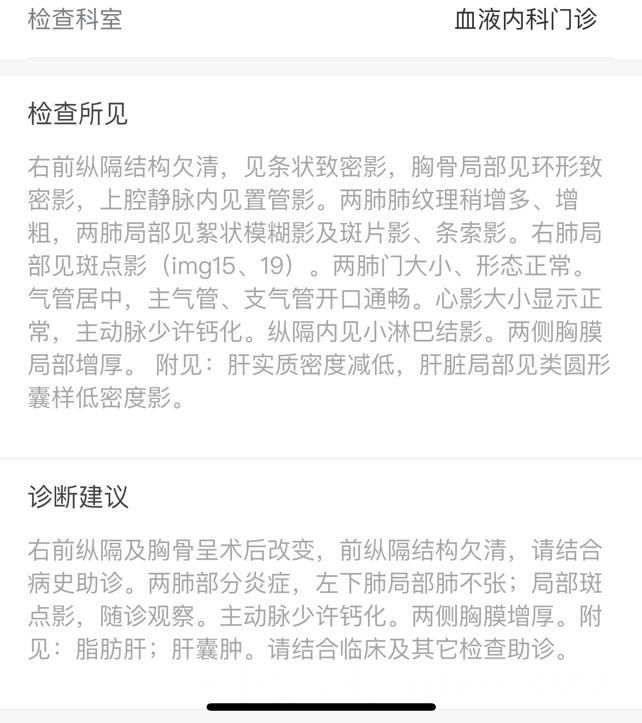 五疗前做的pet,效果挺好的。化疗打了长效升白针,回来受了刺激突然粒缺发烧38.5,吃了消炎药和蒲地兰,一天温度降下来了,打了两天短效,指标都恢复正常。但每天下午就低烧37.7左右。咳嗽有痰,就是比唾液浓一点。做了ct,是要去呼吸科治疗了吗