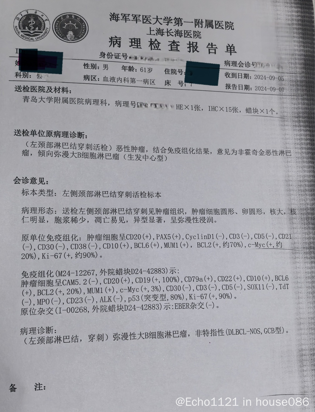 跟在本地做的病理类型好像是一样的,还是弥漫大b,目前打了第一次rchop,家人们请问这个免疫组化的结果上有什么区别吗,跟本地的结果相比是更重还是要轻一些?