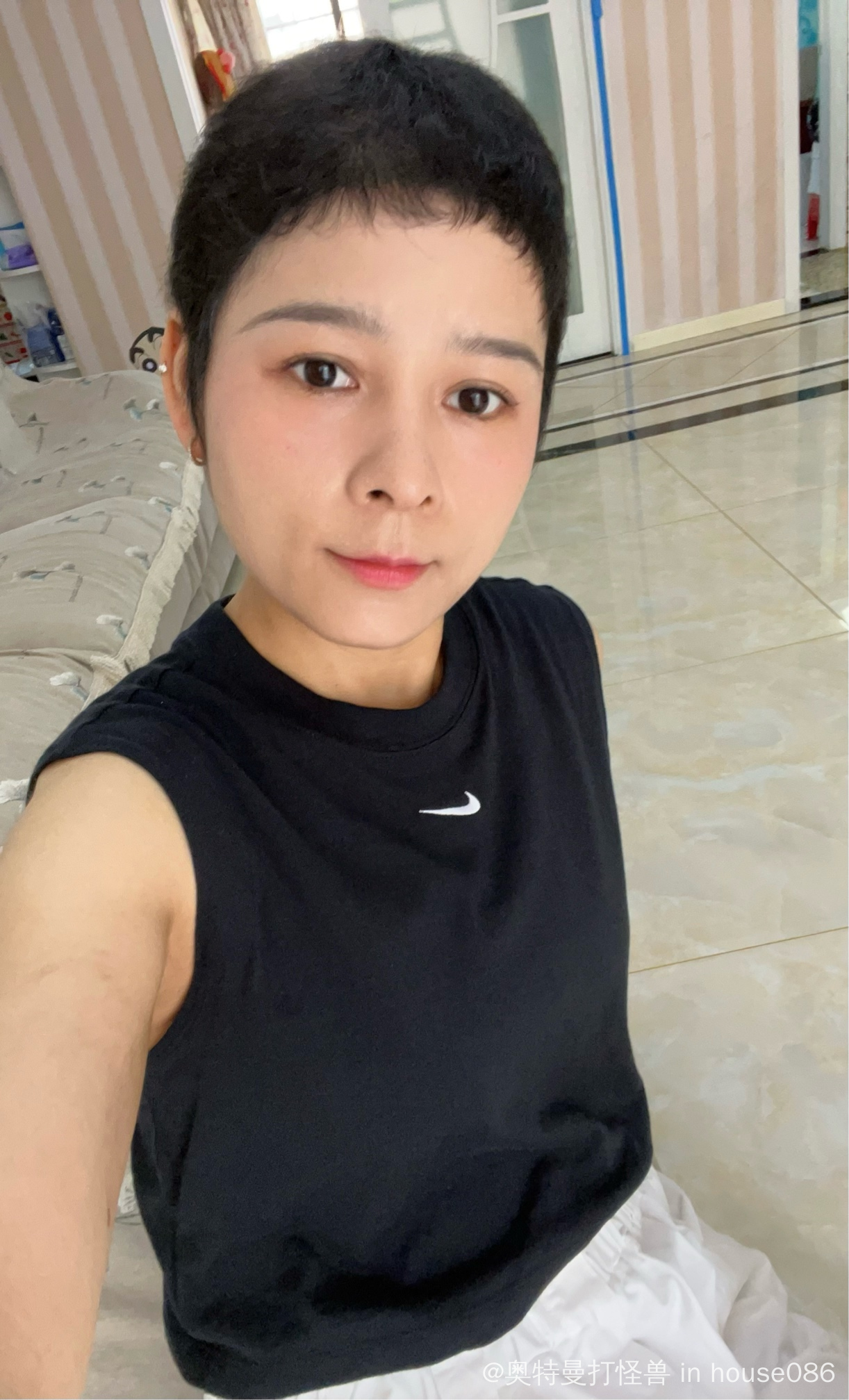 从五月份治疗结束到现在,期间无数次想要脱掉假发出门,想要舒服,不想要束缚,可是,可恶的病耻感让我一次一次的怯步,甚至有一次终于鼓足勇气,进了电梯,可当我看着电梯镜子里的自己,我再次选择落荒而逃,回家戴上内心无比抗拒的假发,四十多度的天气,戴假发出门,真的是无比煎熬,但就因为不想让邻居看见曾经脆弱过的自己,也不想要他人所谓的关心问询,我依旧咬牙戴上假发。在投入工作以后,我上班都会第一个到单位,因为工作需要,上班要戴帽子,这就意味着我需要在单位脱掉假发戴帽子,为了避免同事看见我的脆弱,我都会第早早的到单位收拾好自己。治疗结束已经三个多月了,头发长了差不多四五公分长了,现在每天想寸头出门,可是,又害怕他人投来或怜悯或异样的目光,我问我老公,女生寸头是不是跟男生长发一样,都会让人多看一眼,我老公鼓励我说,别人多看的那一眼是因为你很酷很潮,而且就算别人知道是因为生病的原因,这也不是什么令人羞耻的事,你现在已经找回曾经失去的健康,战胜了病魔,你很坚强,很勇敢,也许,路上有一个跟曾经的你一样在跟病魔斗争的人看到现在健康自信的你,无形中增加了他战胜病魔的信心呢。他无数次的鼓励,我内心无数次的挣扎,终于,我鼓足了勇气,丢掉可恶的病耻感,遵从自己的内心,脱掉假发,怎么舒服怎么来,永远CR,永远健康。