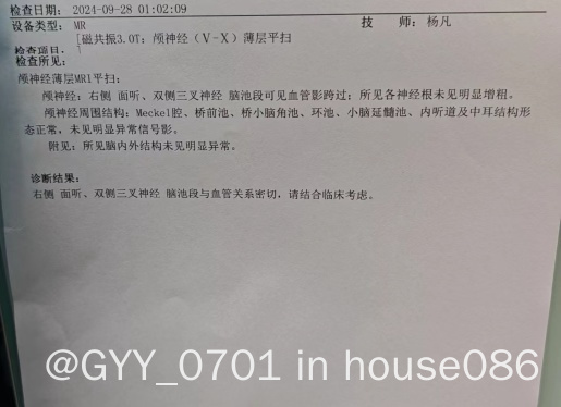 9月底因为牙疼还拍了头颅核磁,怀疑三叉神经痛。