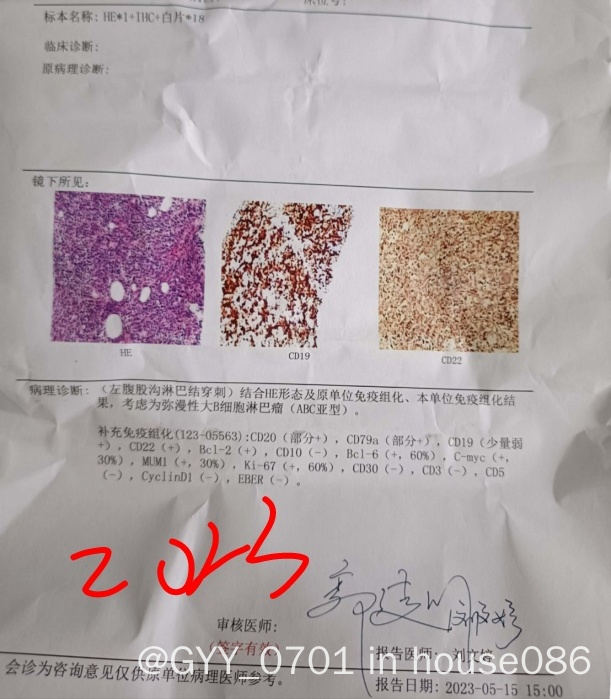 目前已有的检查结果,免疫组化结果还未出。