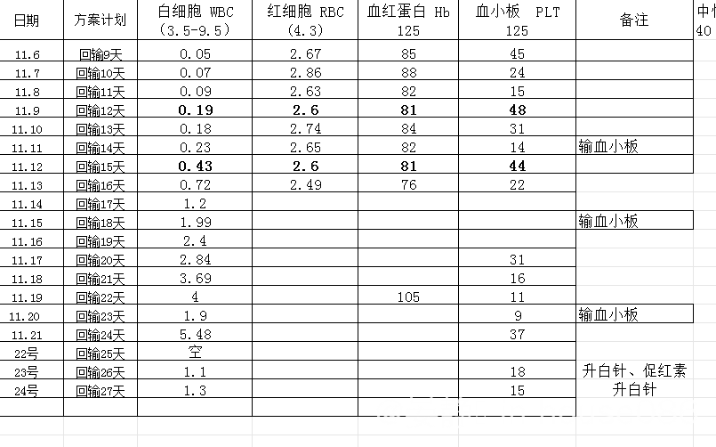 有没有大神看看到底怎么办啊回输27天了,还在仓里升白针一停白细胞就低,血小板也低